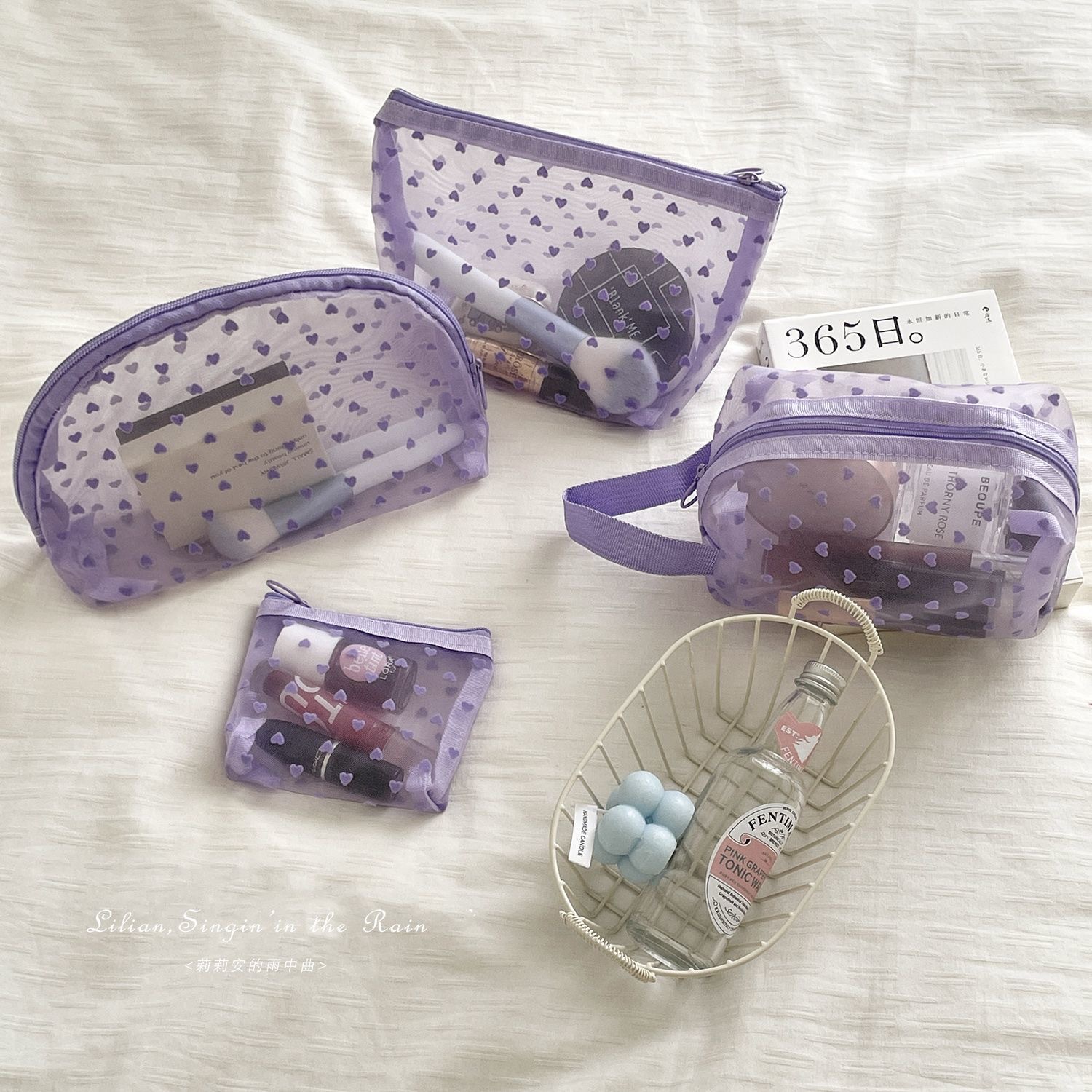 휴대용 5종 세트 메쉬 하트 화장품 가방 대용량 전문 휴대용 세면도구 다기능 립스틱 보관 가방스토어 가기