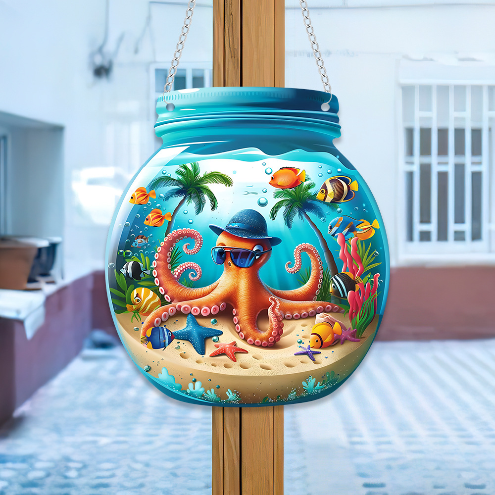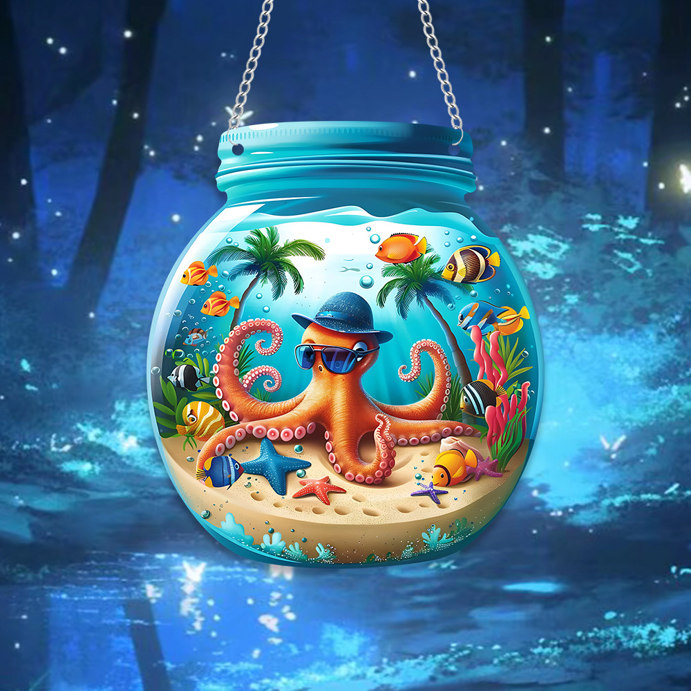 국경 간 여름 해변 휴가 문어 선글라스 수중 세계 아크릴 메이슨 항아리 체인 현관 장식 펜던트