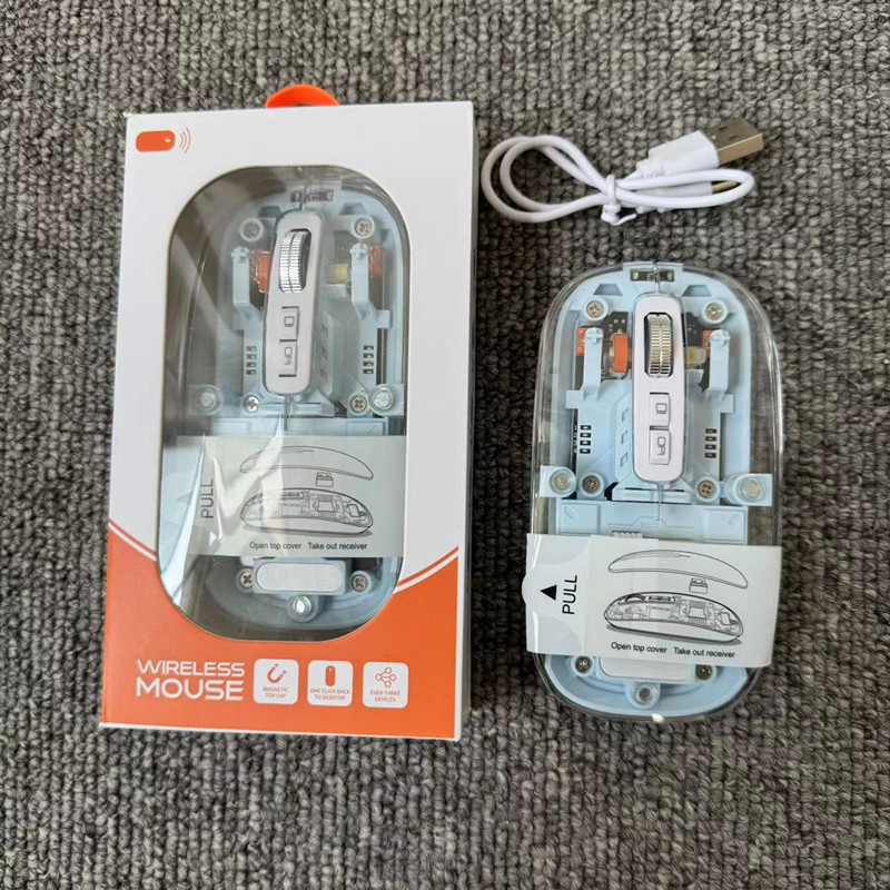 투명 무선 블루투스 3모드 무소음 마우스 충전식 자석 창의적 선물 사무용 마우스 공장 프로모션스토어 가기