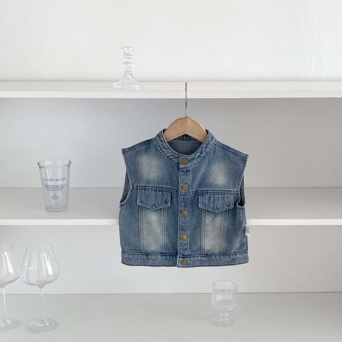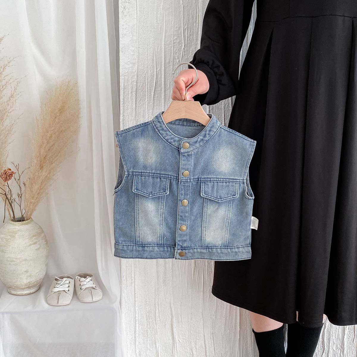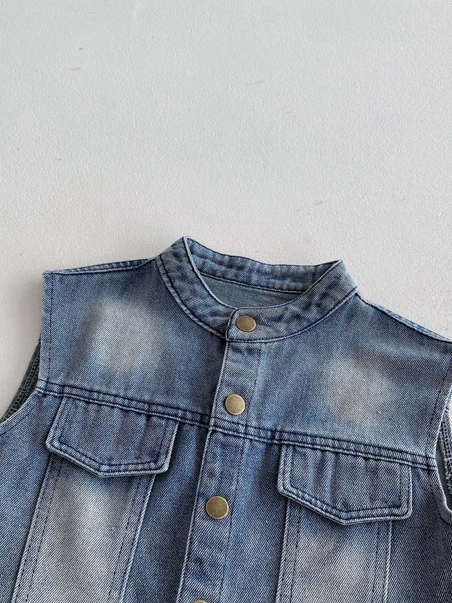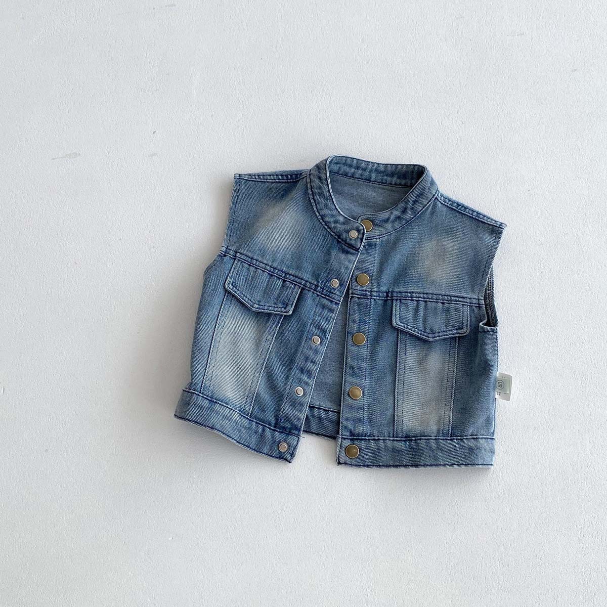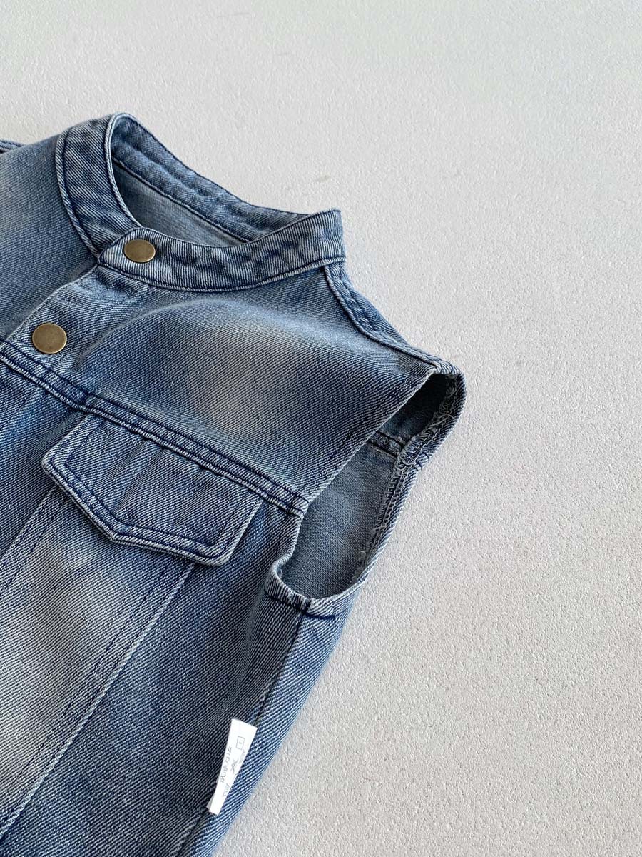 레트로 데님 조끼 2026 봄 아동 캐주얼 만능 조끼 남아 여아 한국 스타일 소형 아우터 상의