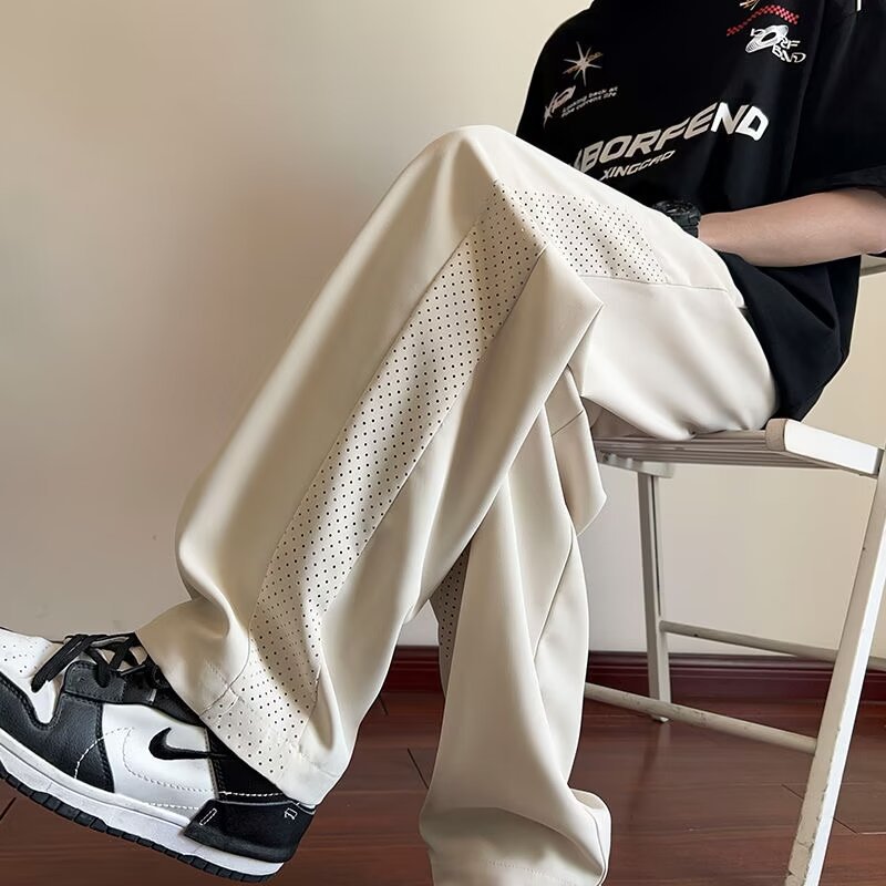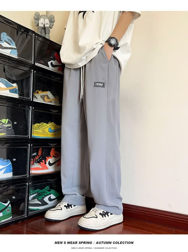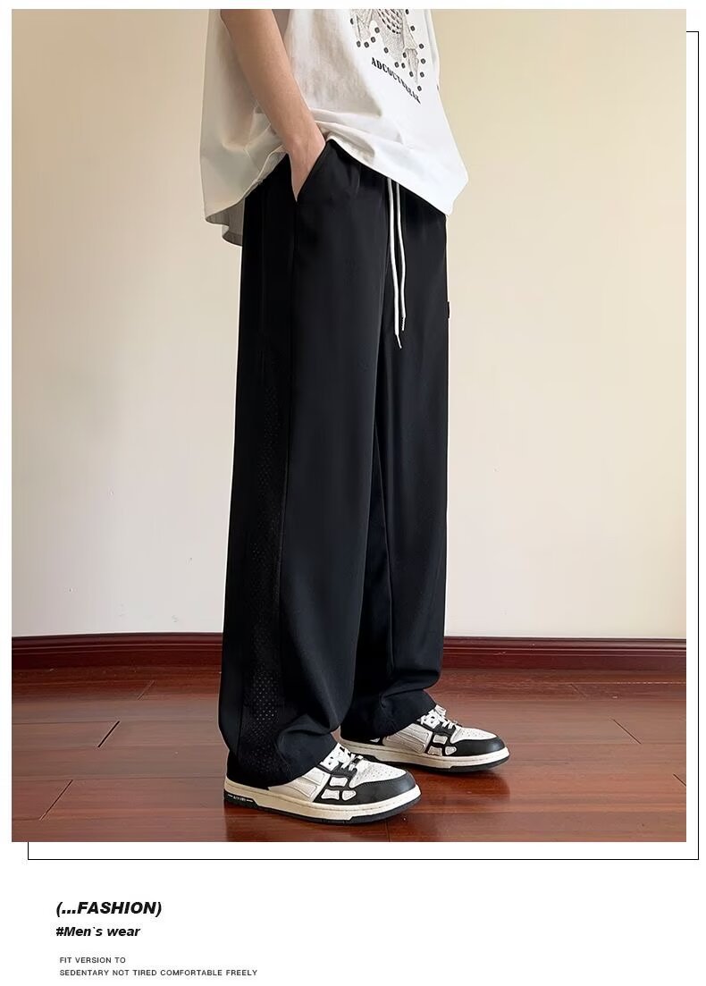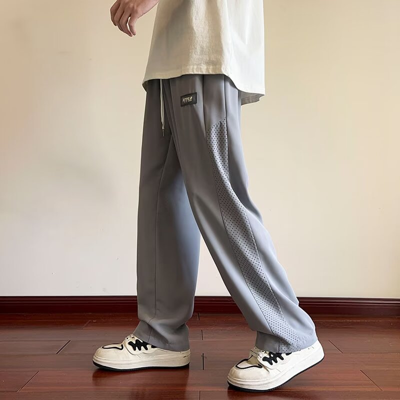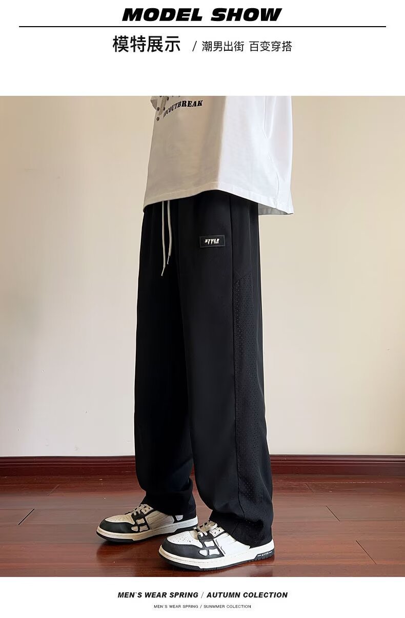 남자 아이스 실크 빠른 건조 캐주얼 바지 2024 여름 새로운 스트레이트 다리 바지 카키 얇은 통기성 스포츠 바지스토어 가기