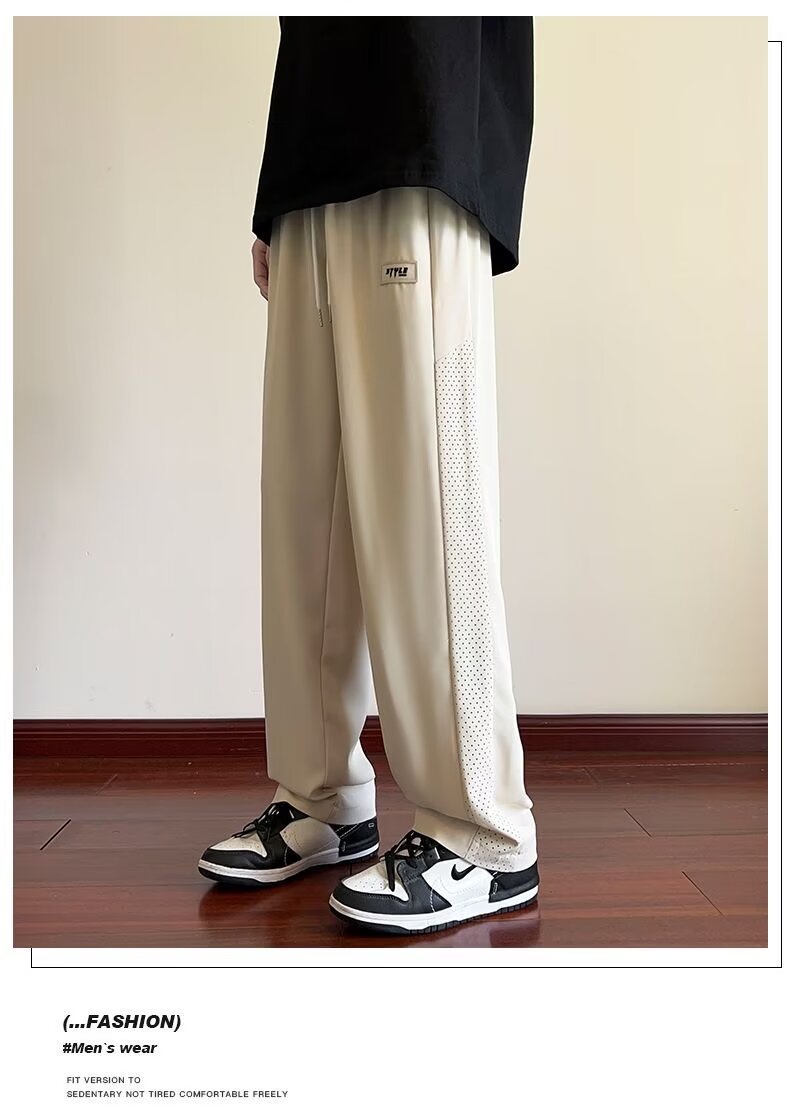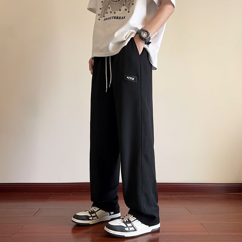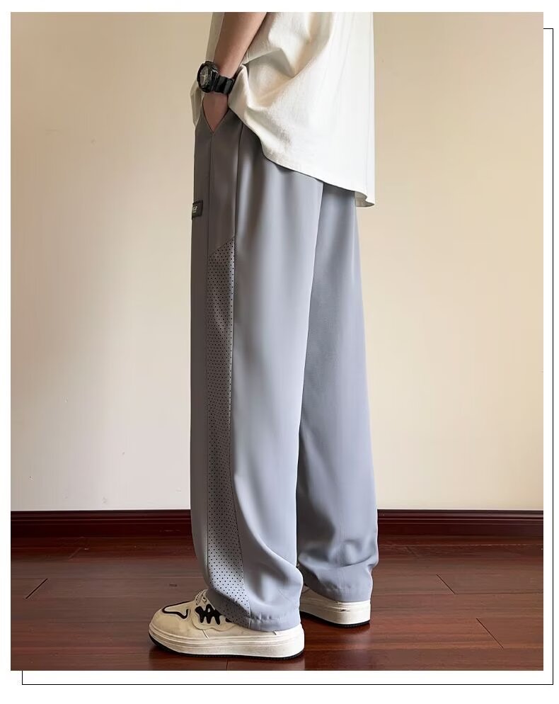 남자 아이스 실크 빠른 건조 캐주얼 바지 2024 여름 새로운 스트레이트 다리 바지 카키 얇은 통기성 스포츠 바지