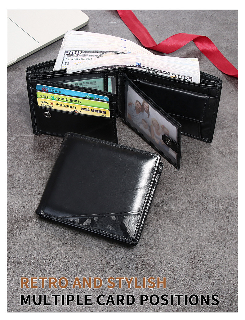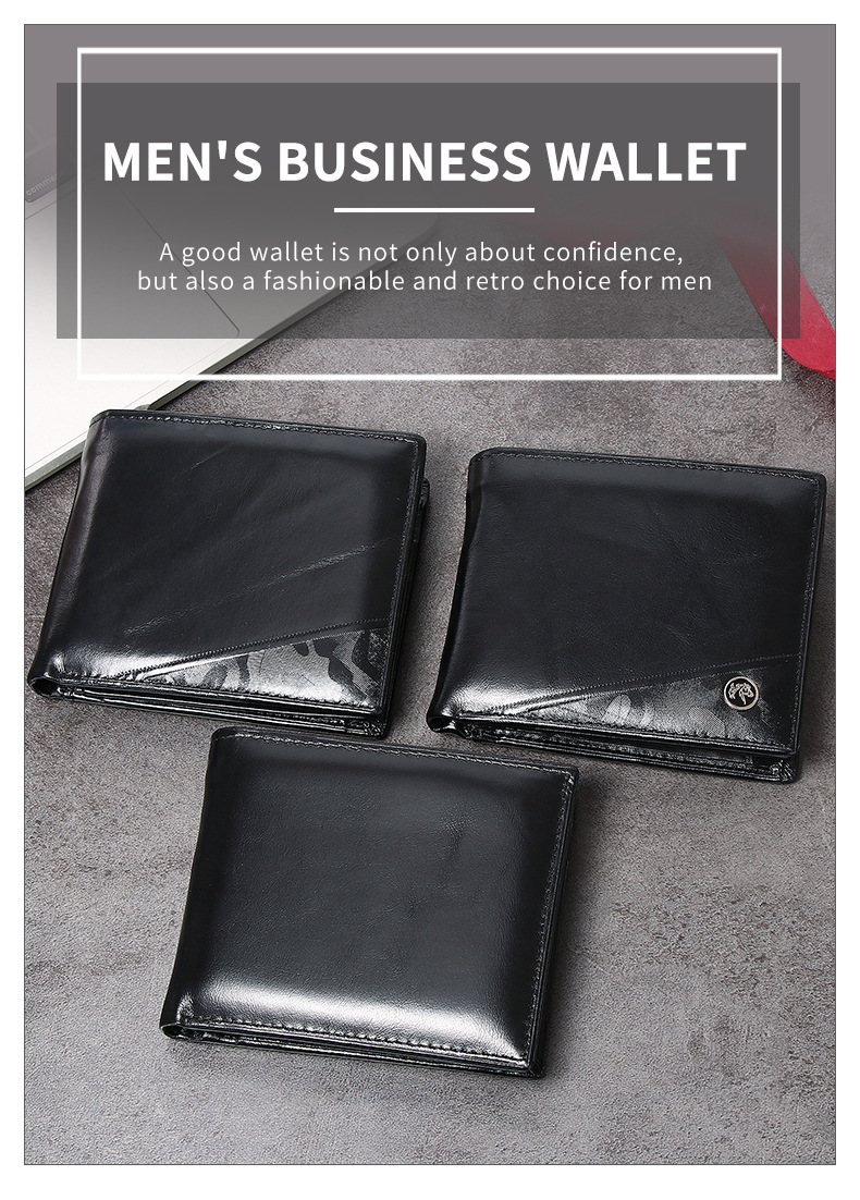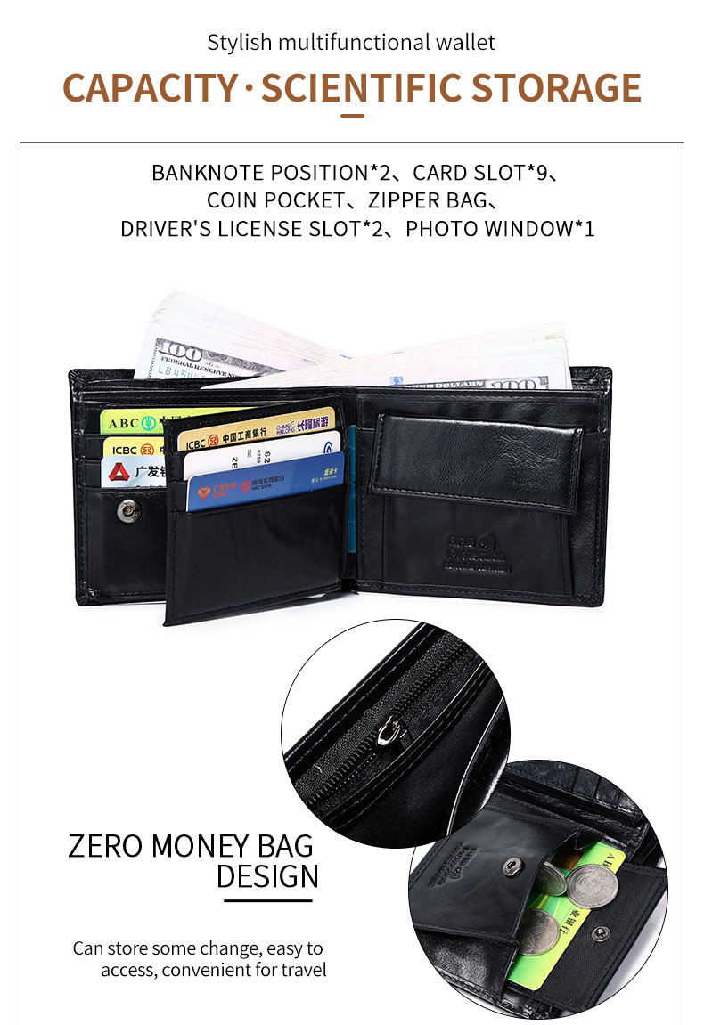 남성용 짧은 Cowhide 지갑 RFID 안티-자기 안티-도난 브러쉬 멀티 카드 지갑 정품 가죽 동전 지갑 국경 배달