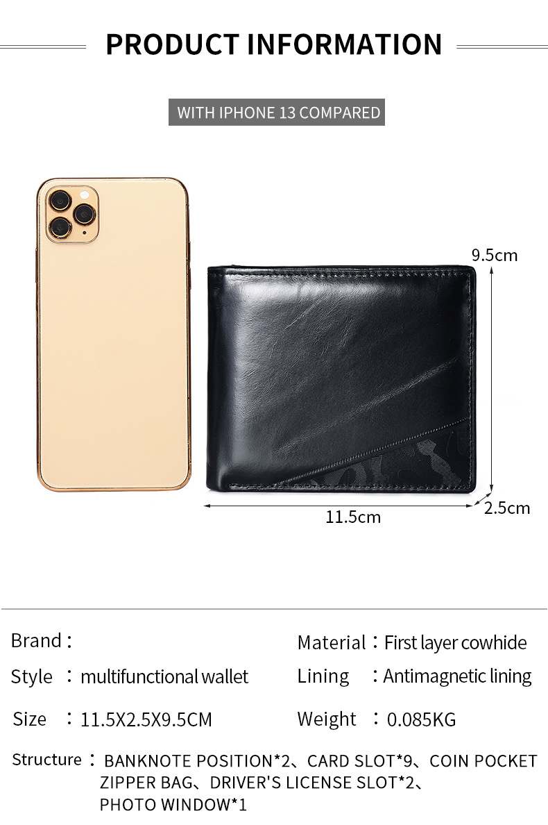 남성용 짧은 Cowhide 지갑 RFID 안티-자기 안티-도난 브러쉬 멀티 카드 지갑 정품 가죽 동전 지갑 국경 배달스토어 가기