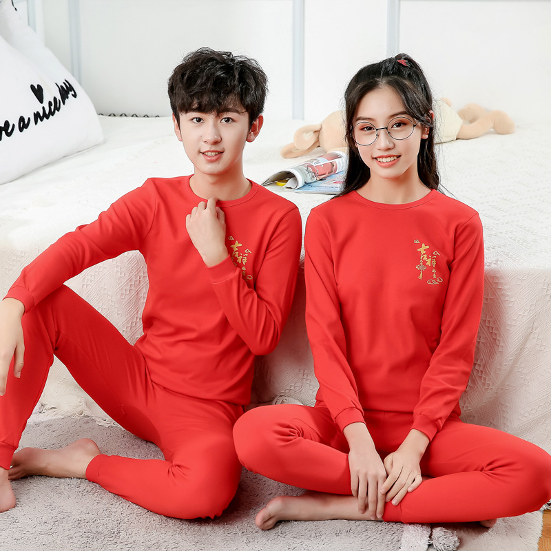 어린이 연봉 빨간 속옷 열 세트 소년 소녀 가을 옷 가을 바지 십대 보투 셔츠