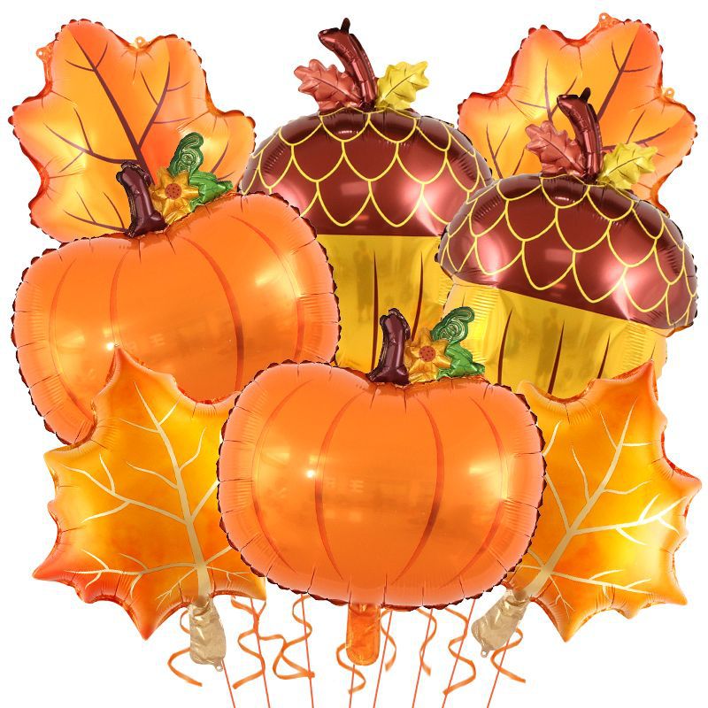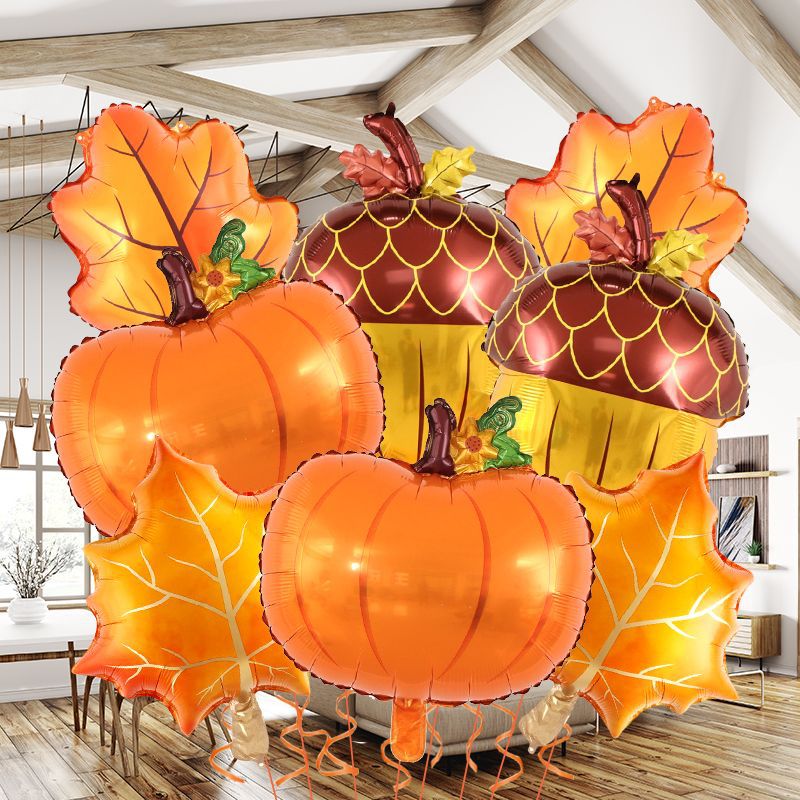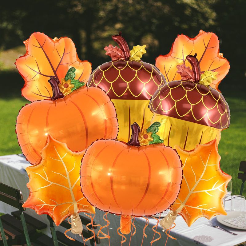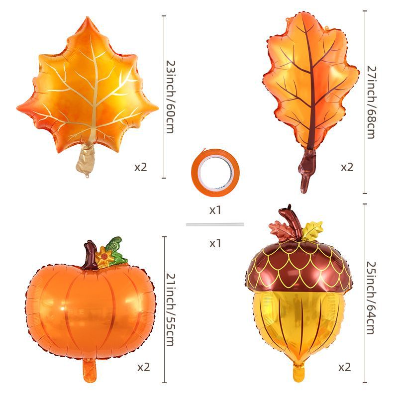 产品名称:感恩节主题派对气球套装秋季丰收树叶黄色枫叶松果农场户外场景布