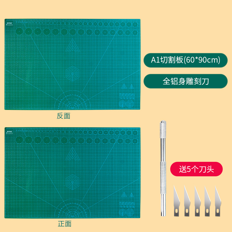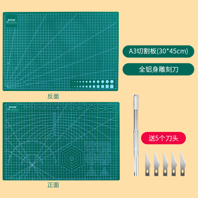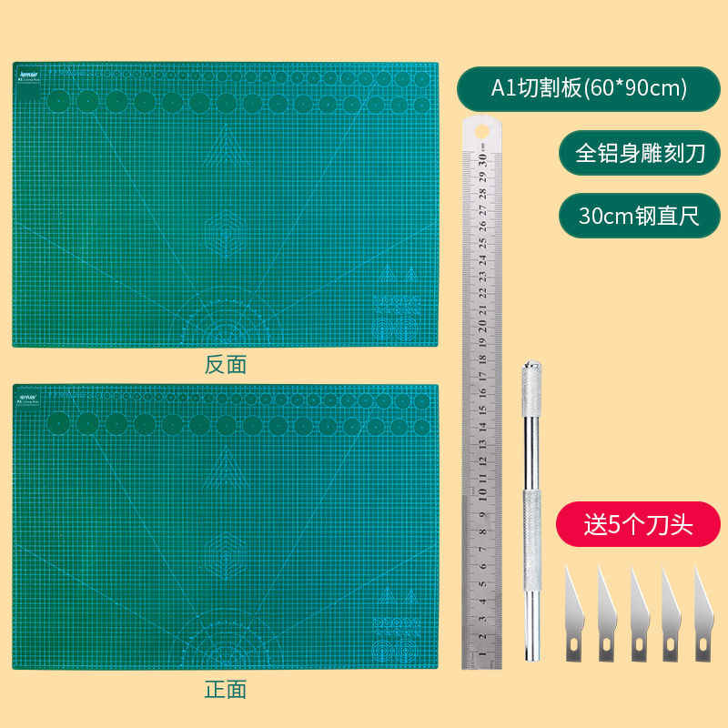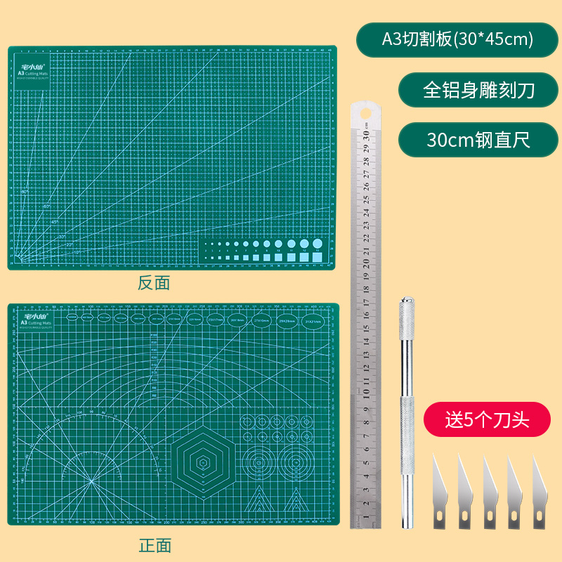 • A3-녹색 + 전체 알루미늄 조각칼 [무료 칼날 5개] + 30cm 강철 자