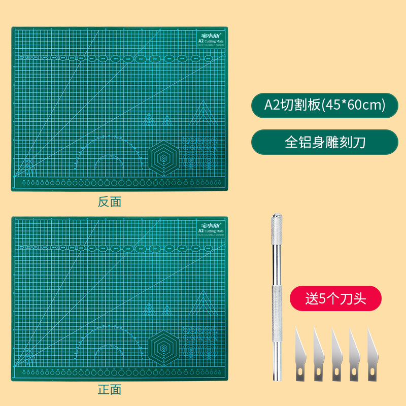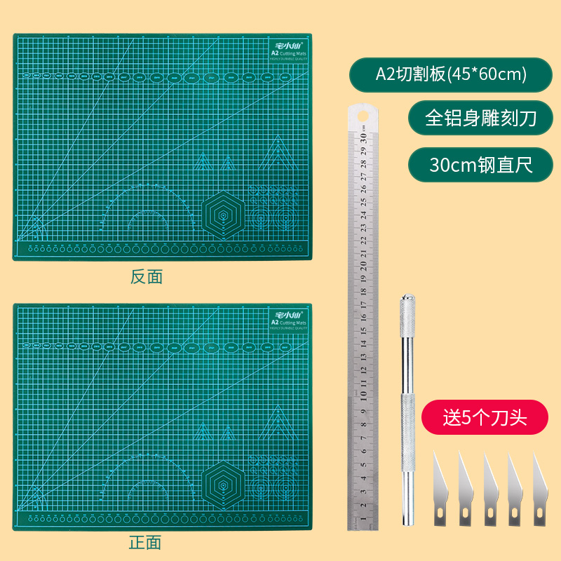 • A2-녹색 + 전체 알루미늄 조각칼 [무료 칼날 5개] + 30cm 강철 자