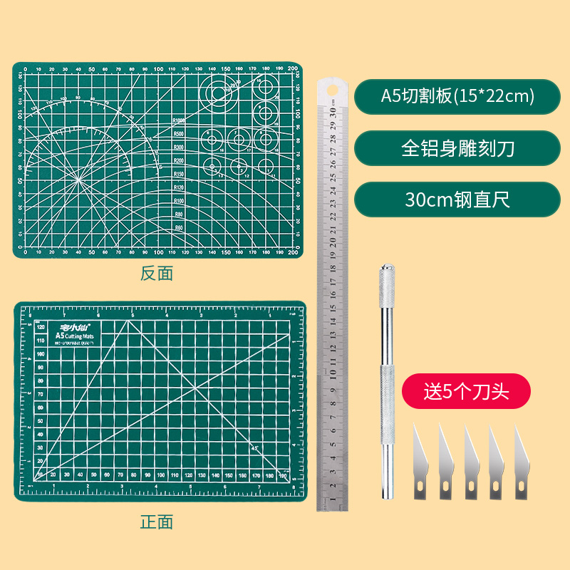 • A5-녹색 + 전체 알루미늄 조각칼 [무료 칼날 5개] + 30cm 강철 자