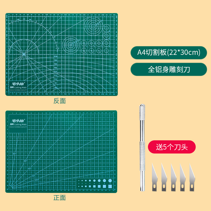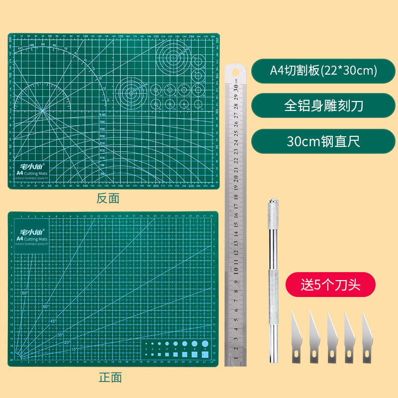 • A4-녹색 + 전체 알루미늄 조각칼 [무료 칼날 5개] + 30cm 강철 자