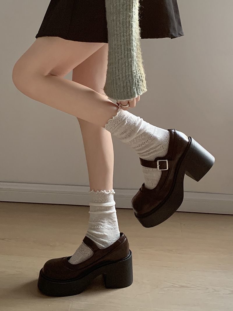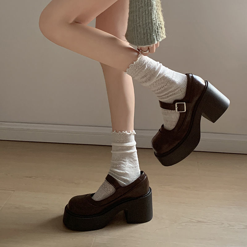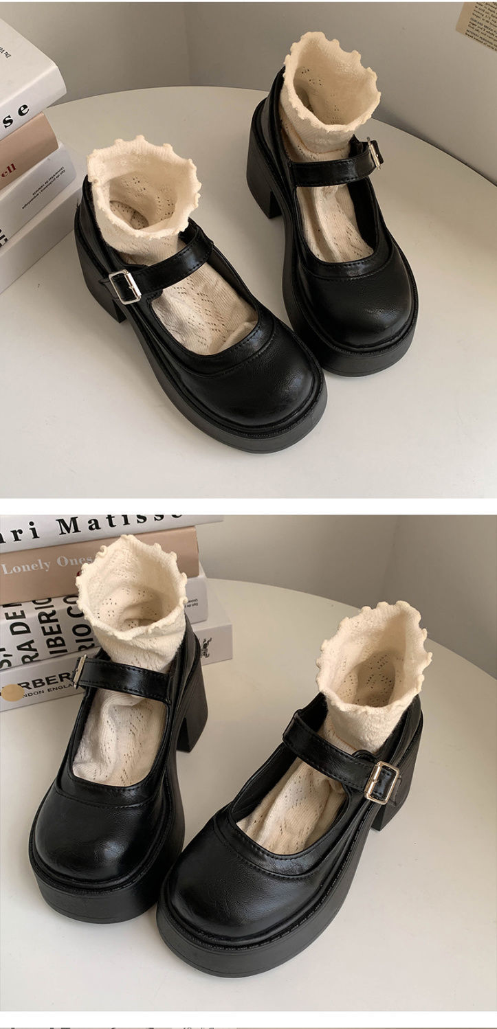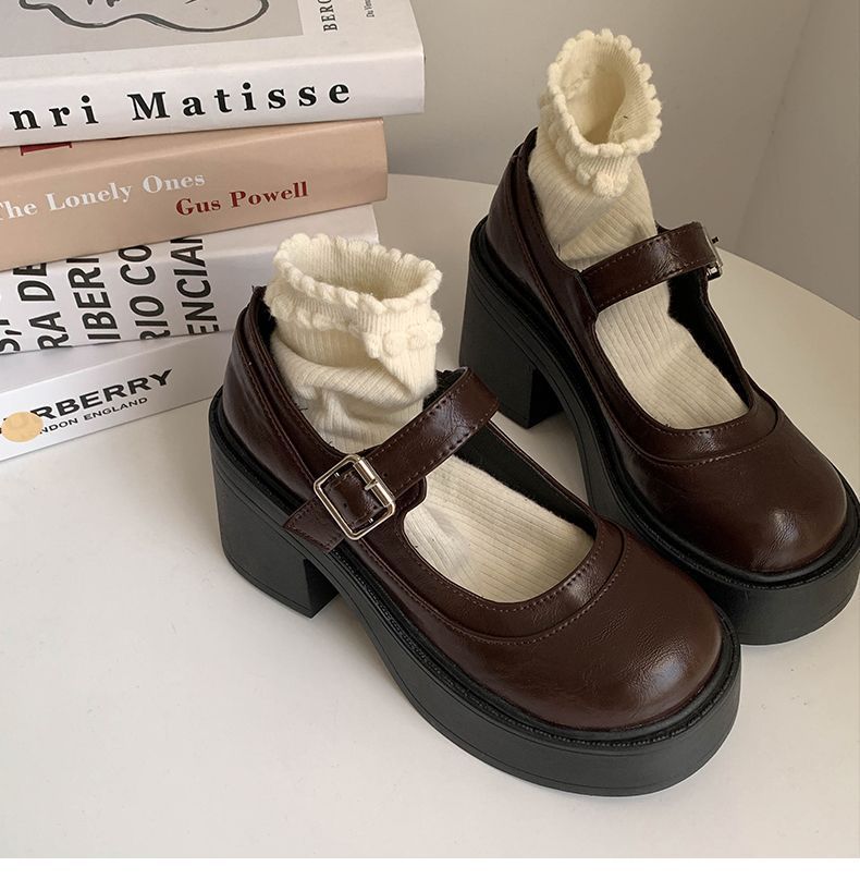 폭발 작은 요정 달콤한 자매 스타일 두꺼운 힐 메리 제인 신발 2024 여름과 가을 학생 블랙 레트로 프랑스 가죽 신발
