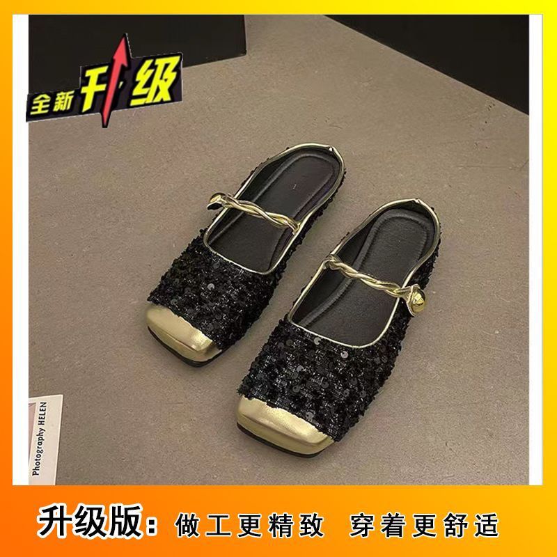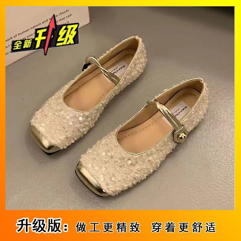 메리 제인 여성 신발 플랫 스퀘어 발가락 신발 2024 새로운 봄 우아한 스퀘어 발가락 우유 신발 샤넬 스타일 부드러운 스타일 신발스토어 가기