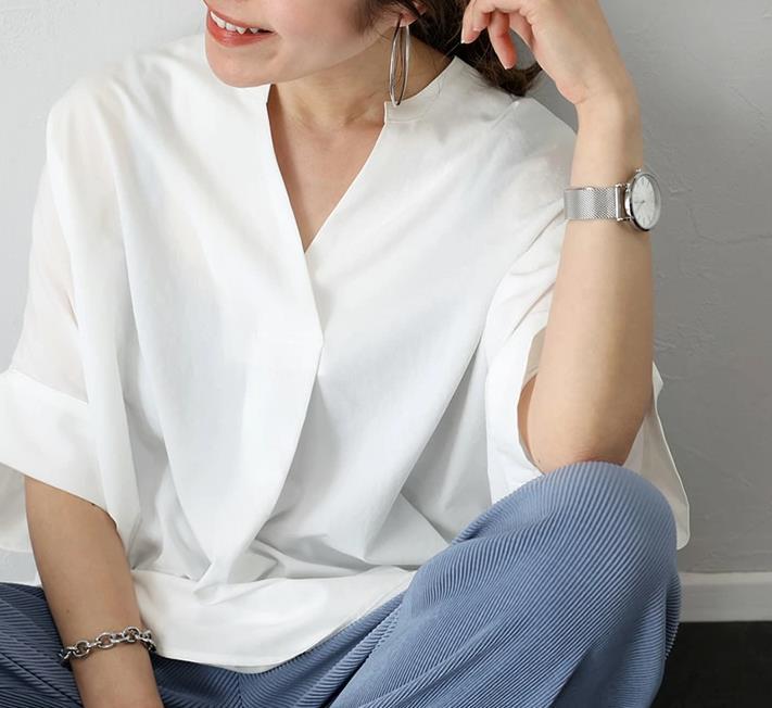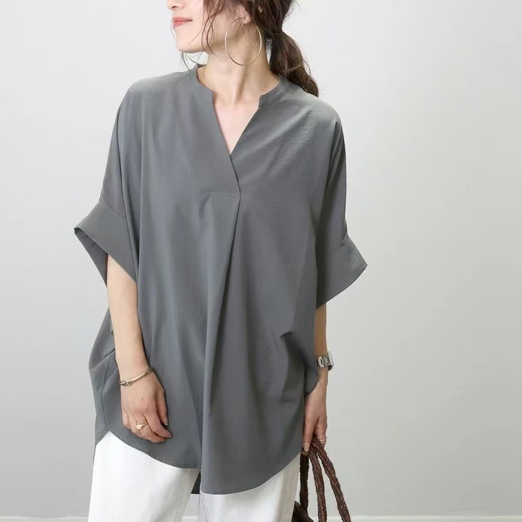 국경 간 일본 한국 외국 싱글 유럽 역 새로운 여름 칼라 풀오버 느슨한 단색 셔츠 쉬폰 셔츠 탑스토어 가기
