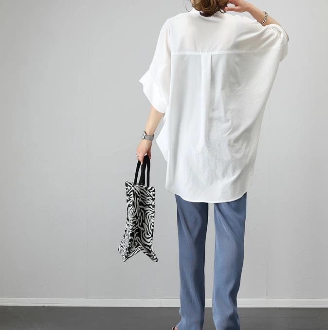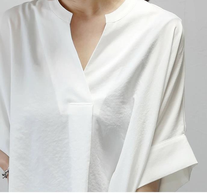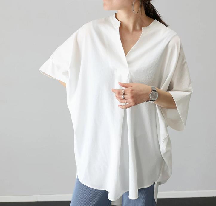 국경 간 일본 한국 외국 싱글 유럽 역 새로운 여름 칼라 풀오버 느슨한 단색 셔츠 쉬폰 셔츠 탑