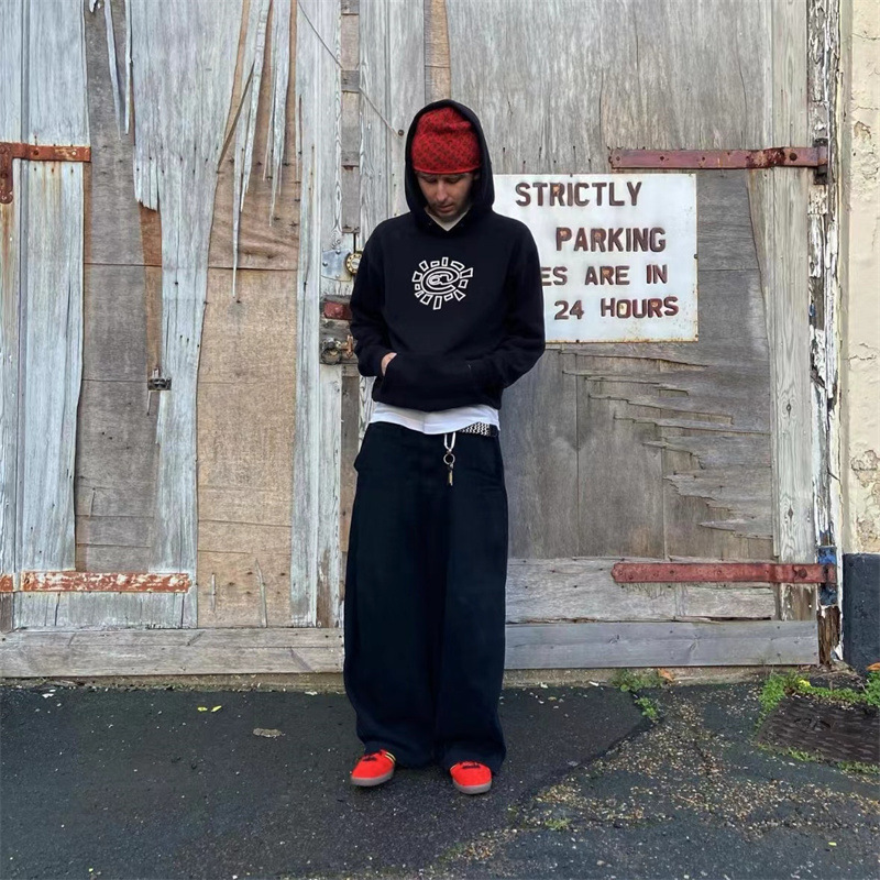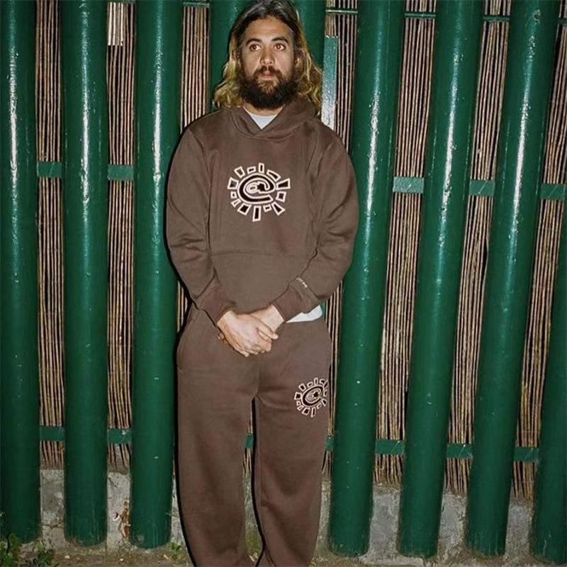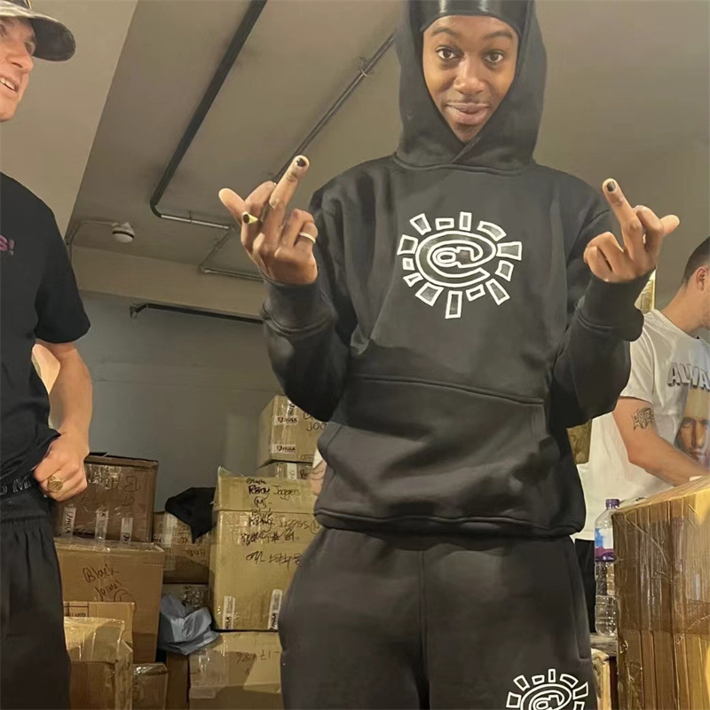 ADWYSD 가을과 겨울 새로운 남성과 여성 커플 태양 롤베이스 인쇄 기모 후드 땀 캐주얼 땀 바지