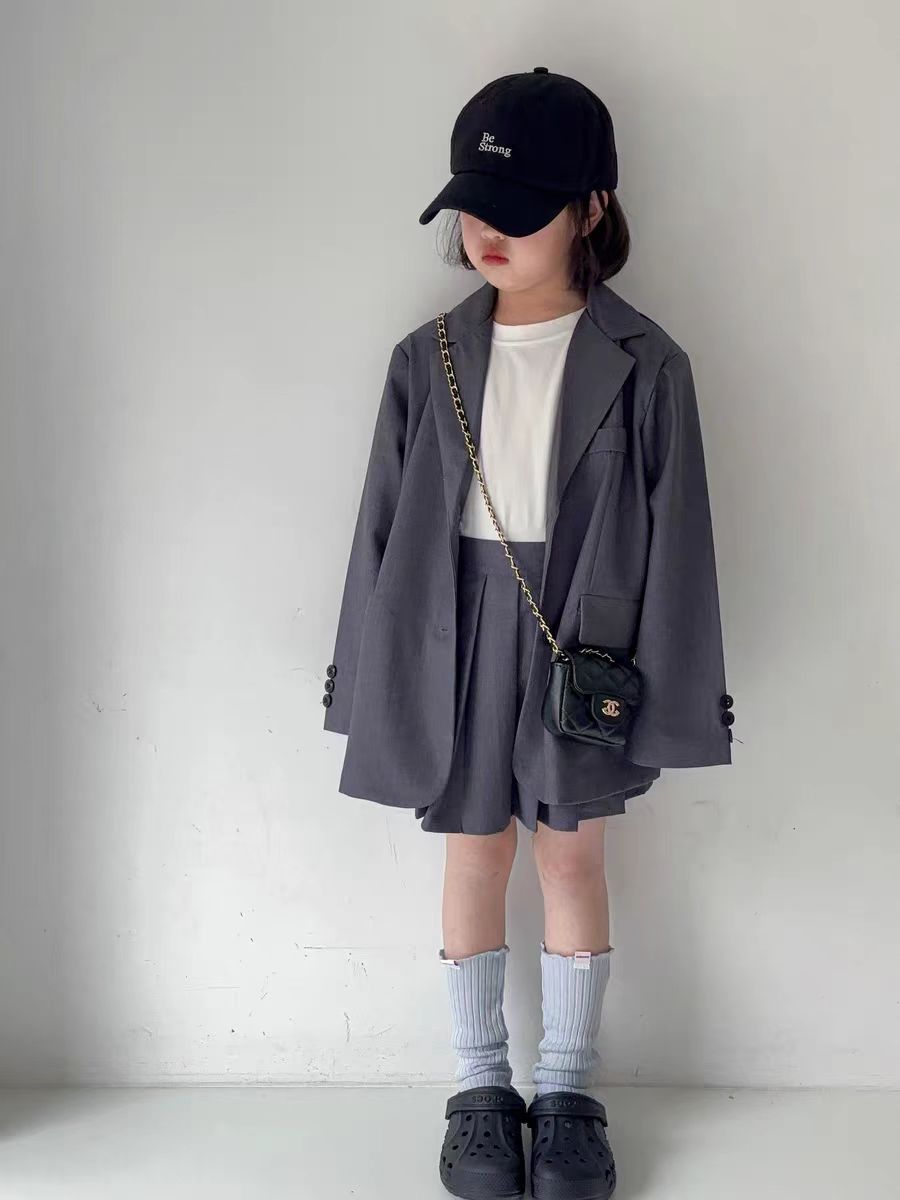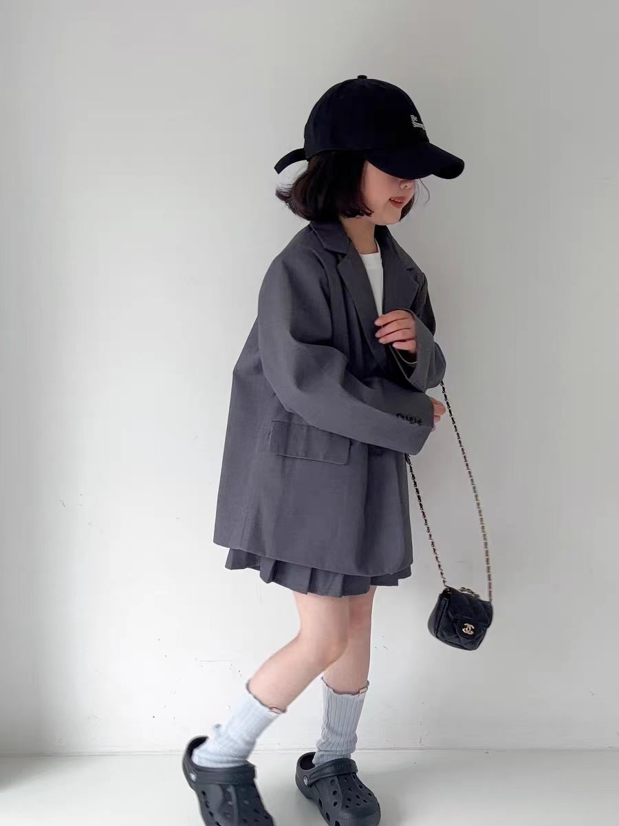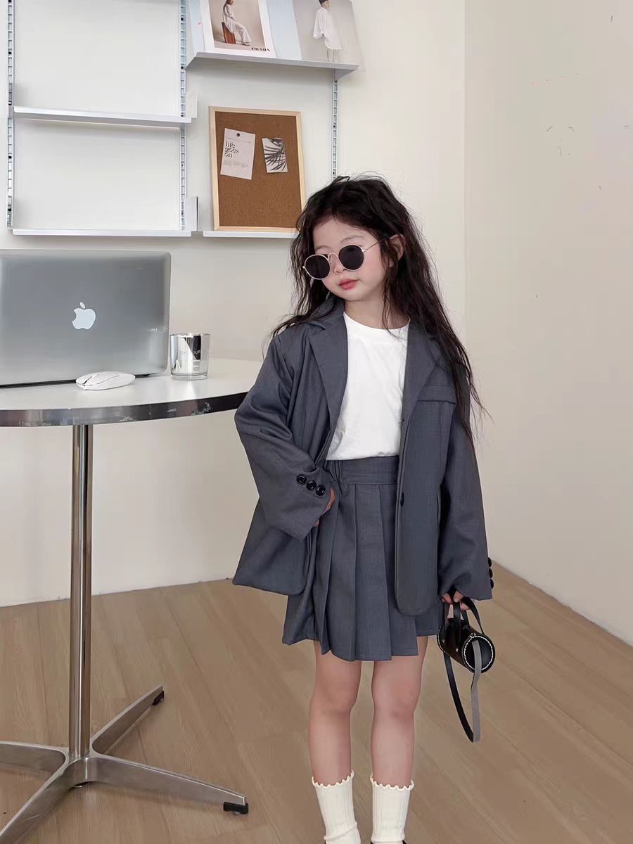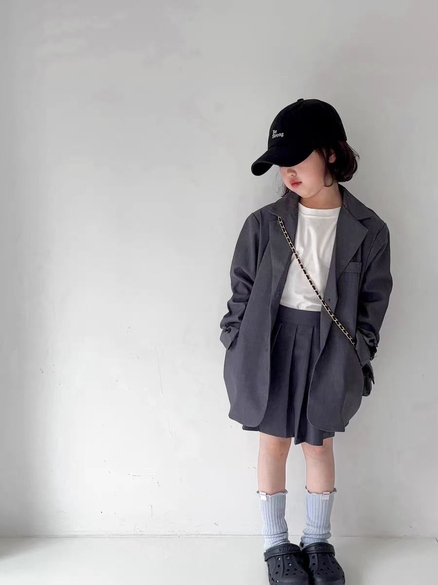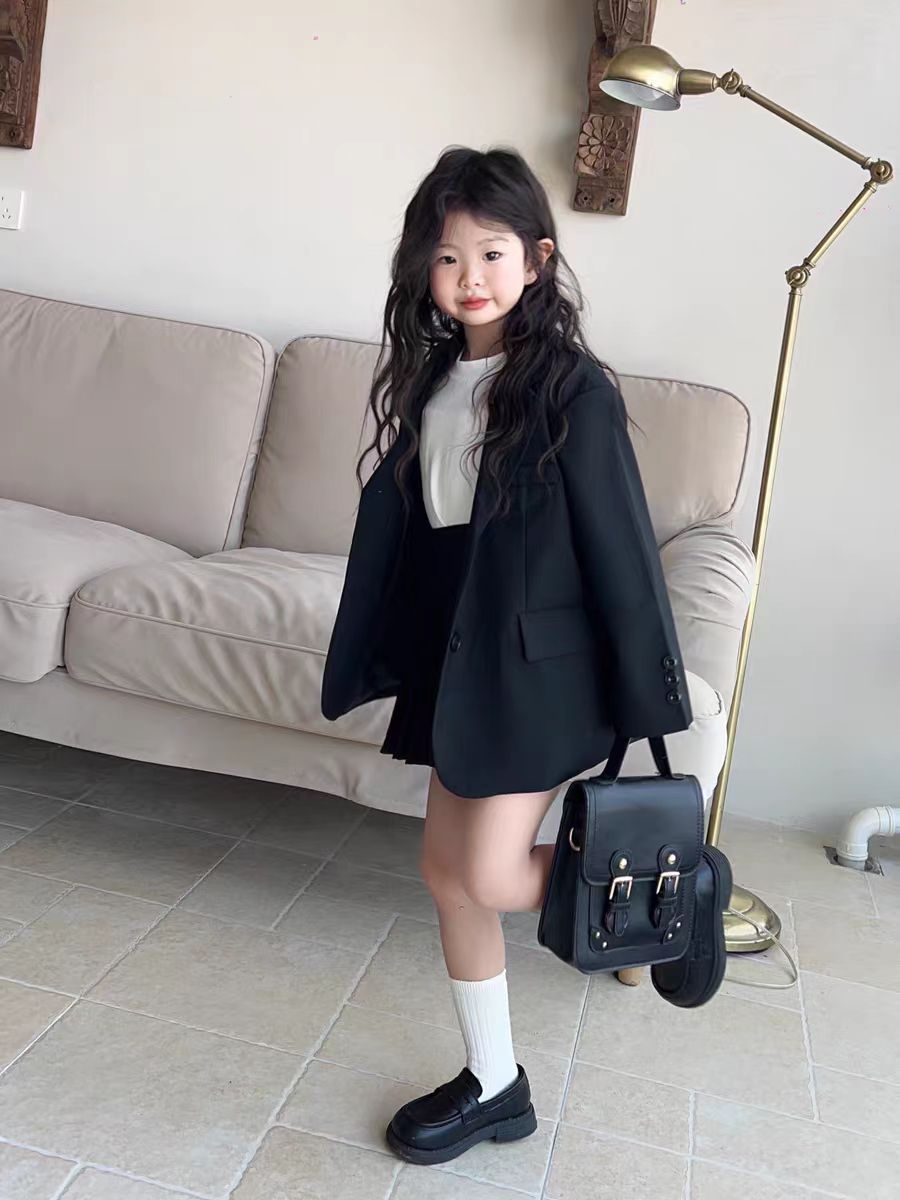아동용 정장 재킷 여아 2025 가을 새로운 한국 스타일 캐주얼하고 세련된 중대형 어린이 주름 치마바지