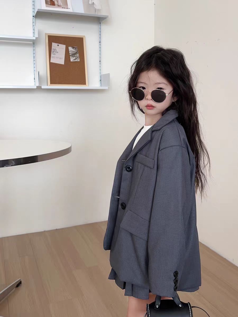 아동용 정장 재킷 여아 2025 가을 새로운 한국 스타일 캐주얼하고 세련된 중대형 어린이 주름 치마바지스토어 가기