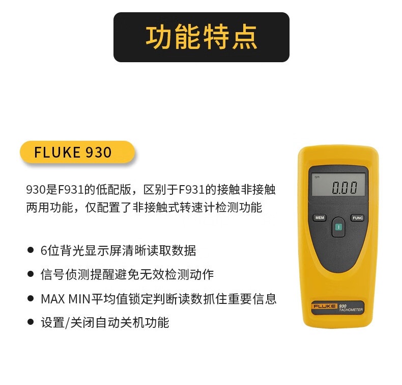 FLUKE Fluke F931 비접촉 타코미터 휴대용 디지털 속도계 광학 (비접촉)