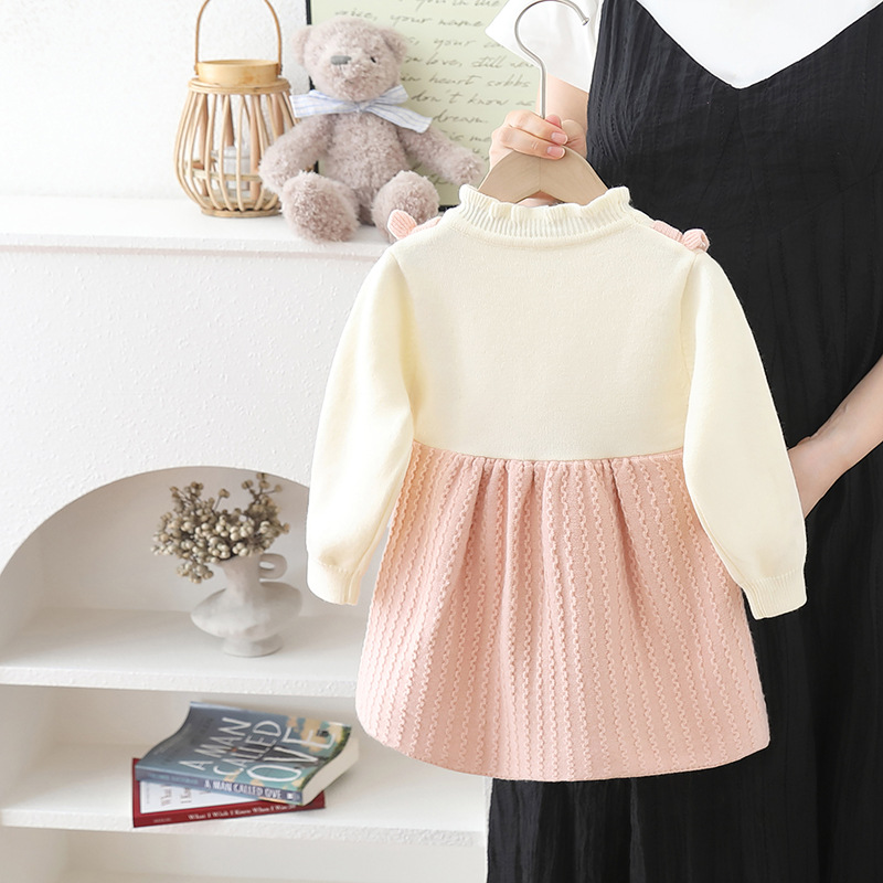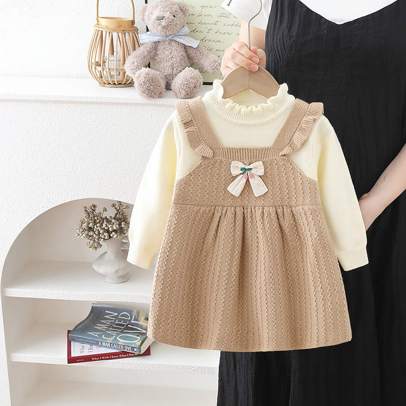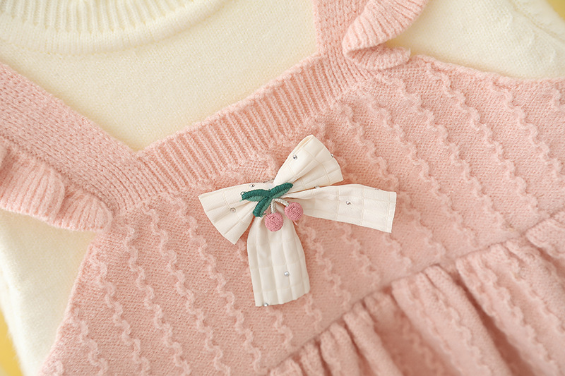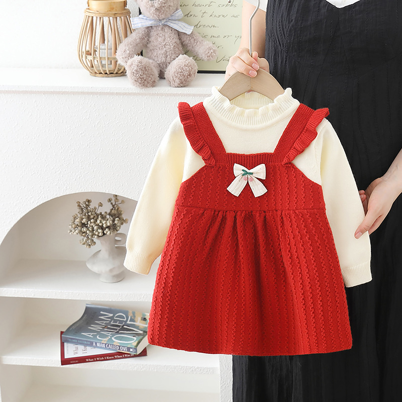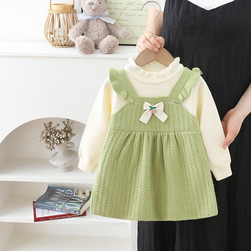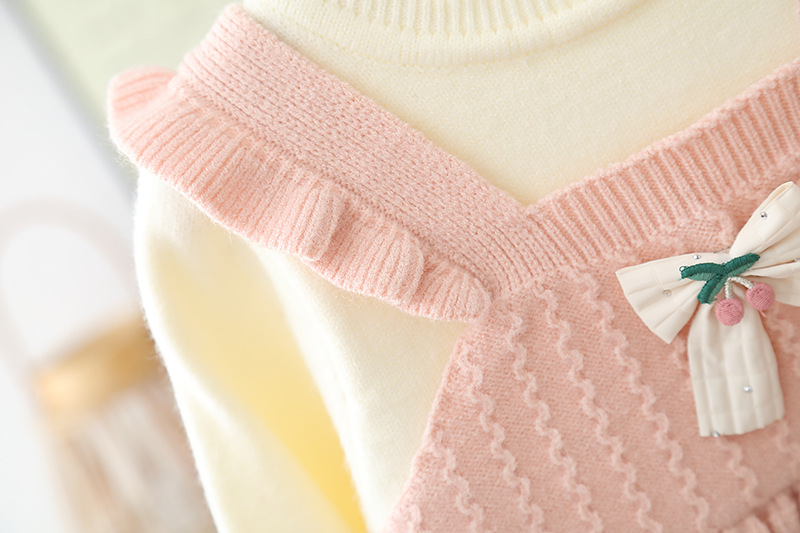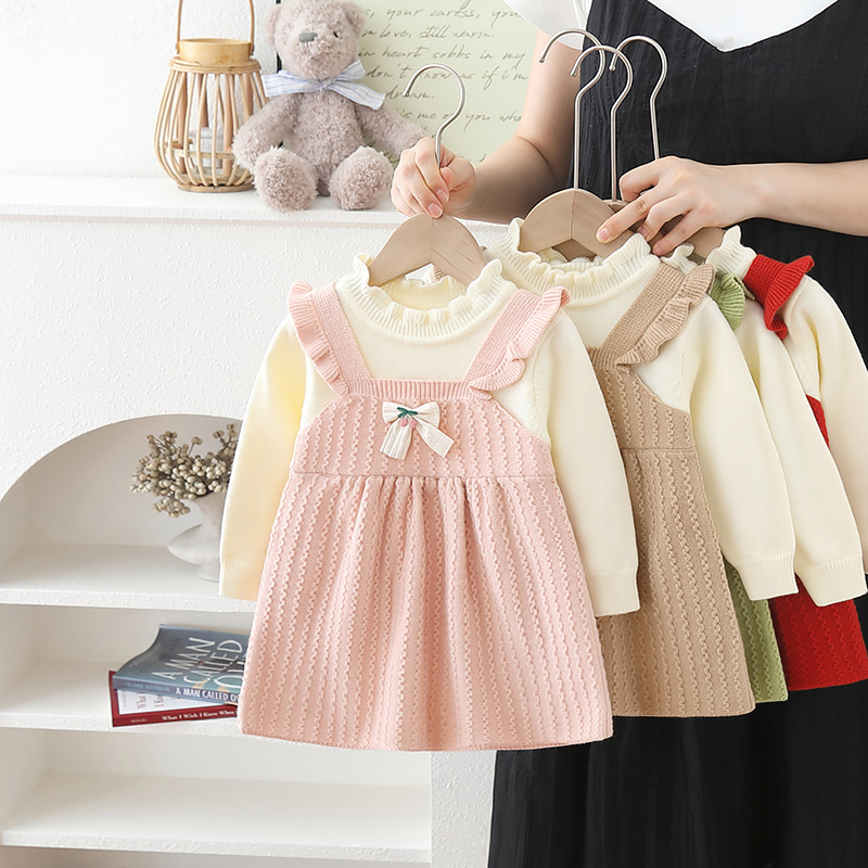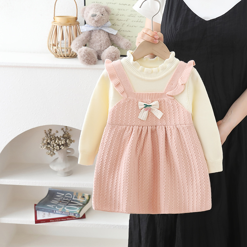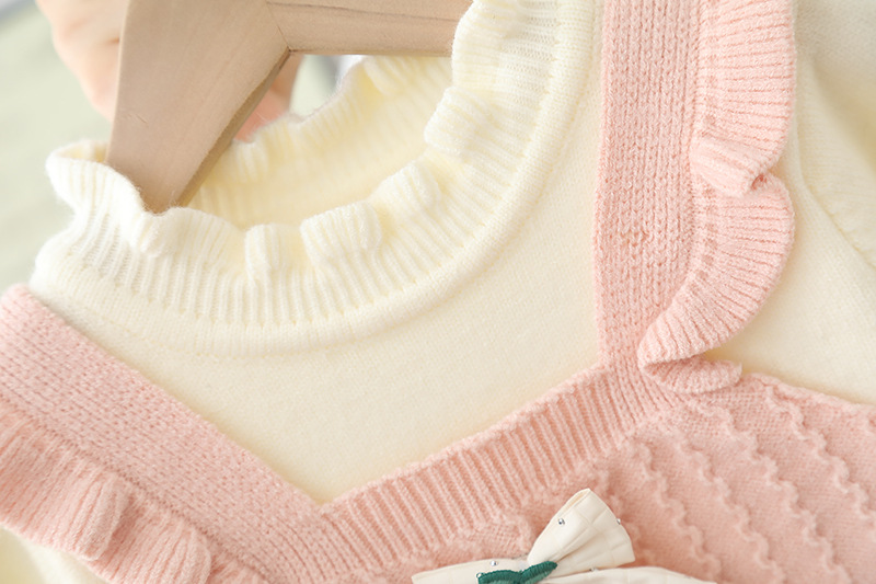 24 새로운 레이스 크루 넥 스커트 가짜 투피스 스웨터 원피스 귀여운 여자 스웨터