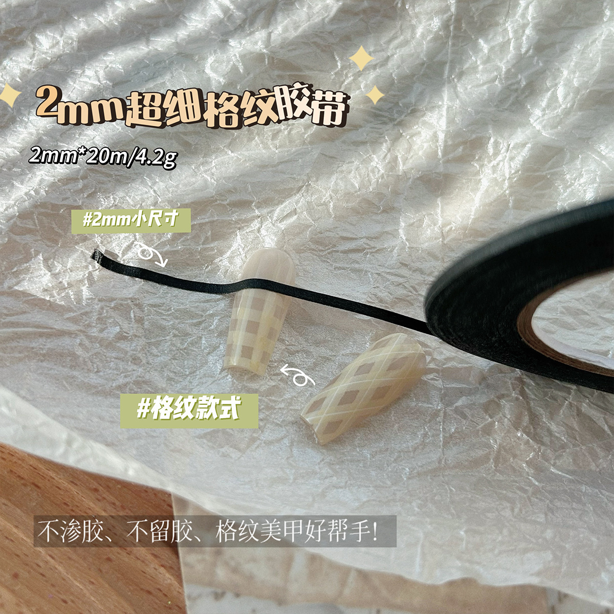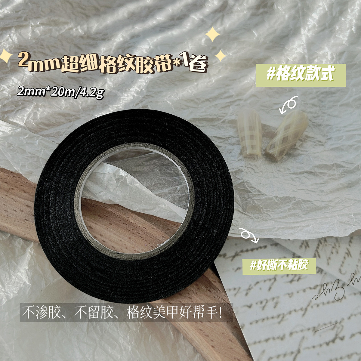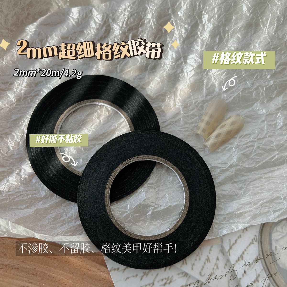 네일 아트 체크 라인 마스킹 테이프 스티커 2mm 미세 테이프 체크 보조 도구 비 투과성 접착제를 찢기 쉬운