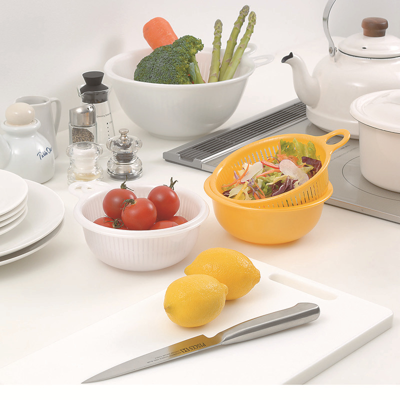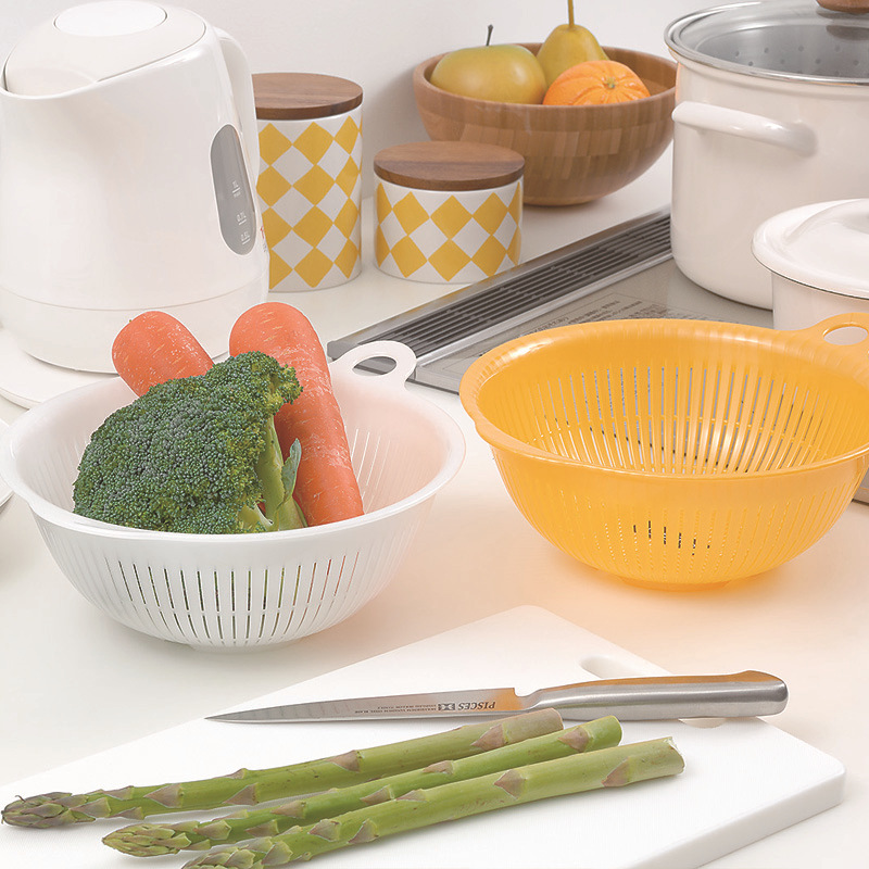 일본 수입 구형 다중 사용 플라스틱 그릇 주방 접시 세척 단일 귀를 매달릴 수 있습니다 세척 과일 바구니스토어 가기
