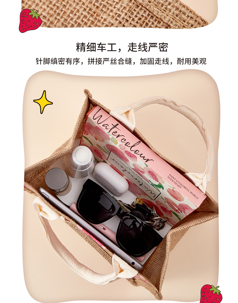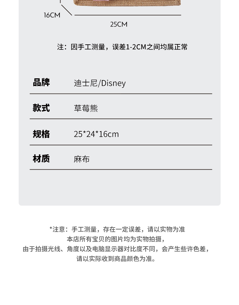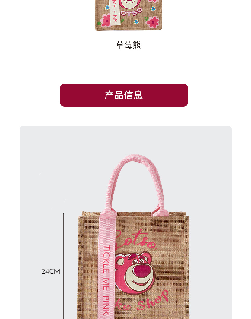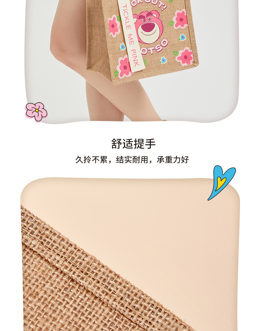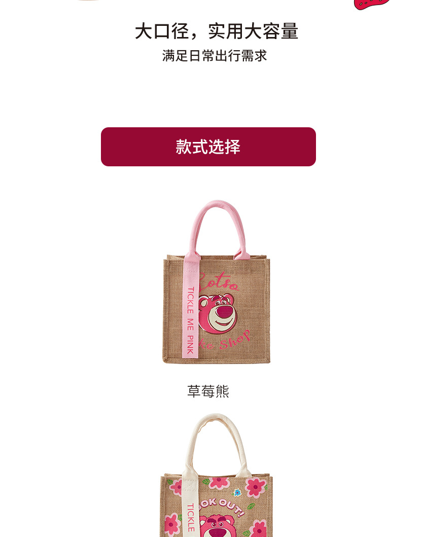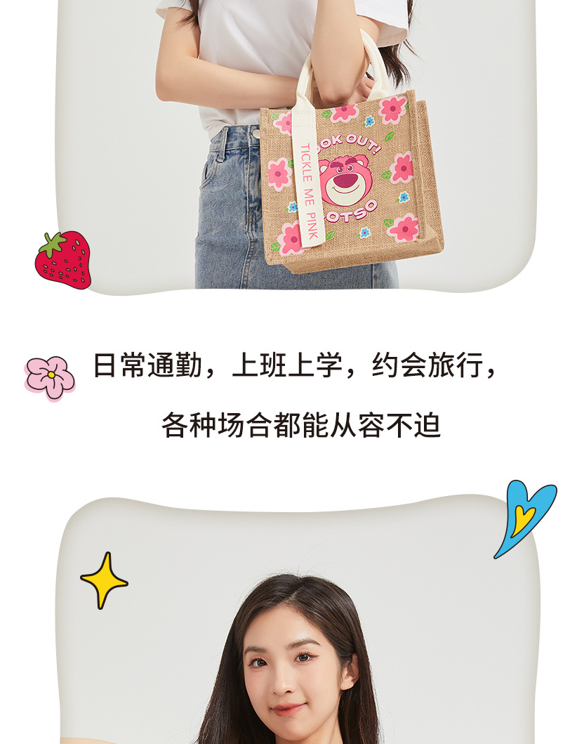 디즈니 딸기 곰 토트 가방 린넨 가방 소녀 저장 가방 만화 학생 쇼핑 유행 가방스토어 가기