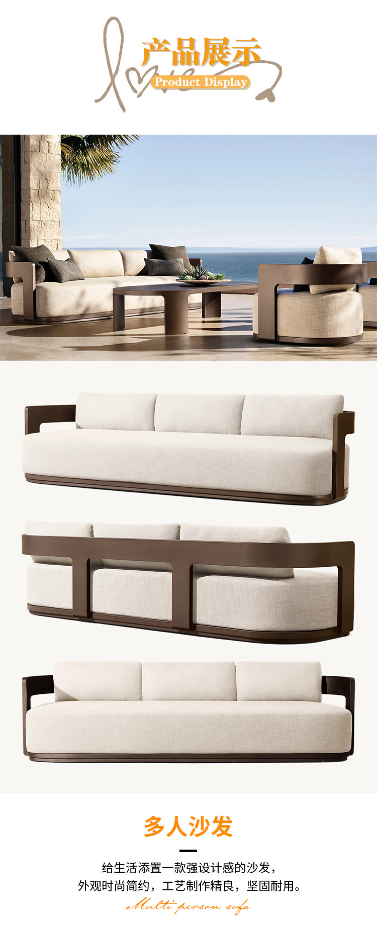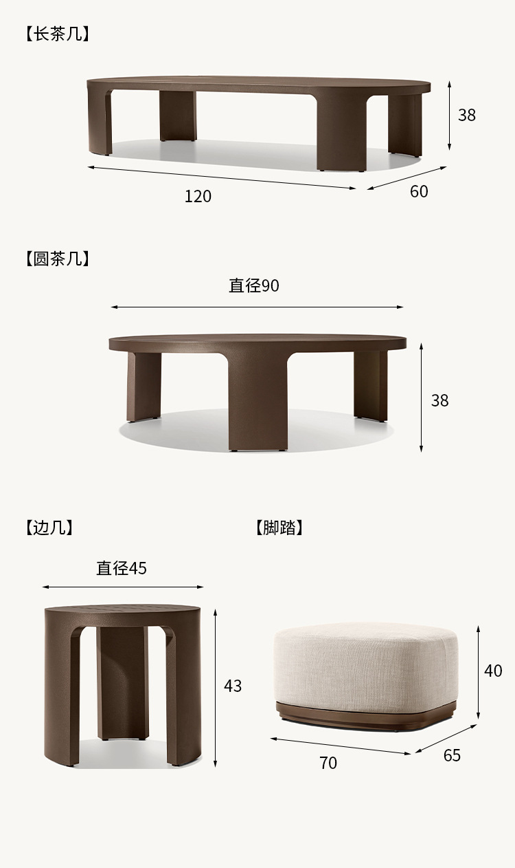 야외 소파 조합 알루미늄 합금 커피 테이블 레저 안뜰 정원 빌라 호텔 방수 자외선 차단제 침대 북유럽스토어 가기