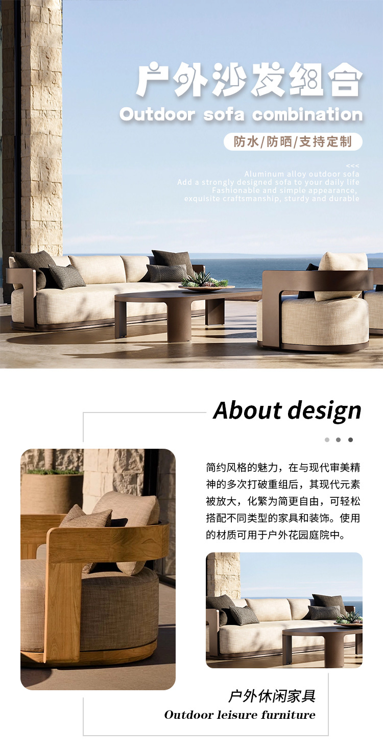 야외 소파 조합 알루미늄 합금 커피 테이블 레저 안뜰 정원 빌라 호텔 방수 자외선 차단제 침대 북유럽