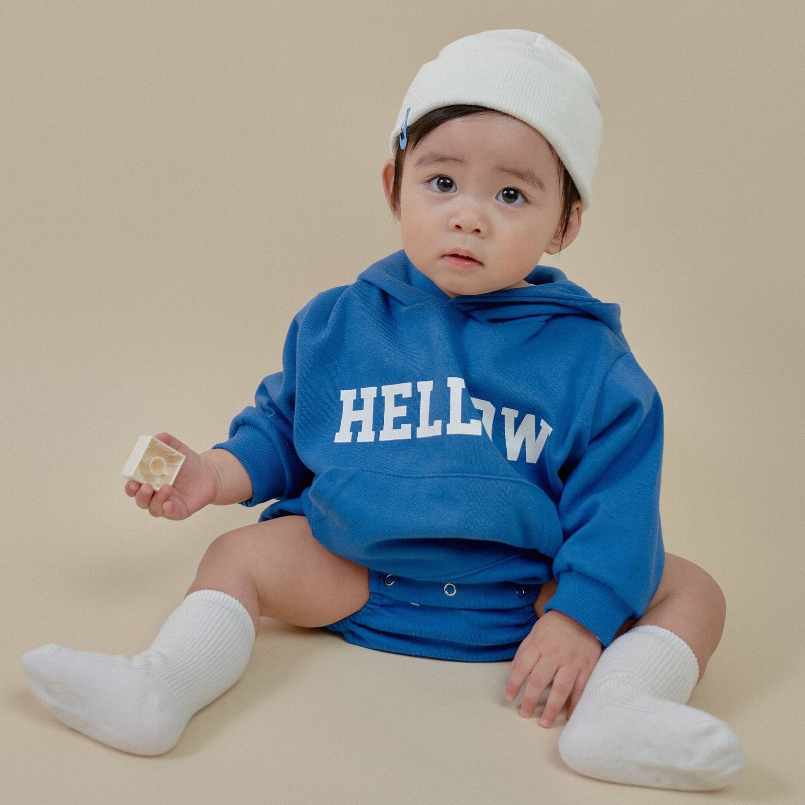 가을 2024 년 새 아기 점프 수트 한국식 아기 후드 인스타그램 스타일 세트 소년 소녀를위한 등반 아기 후드 스웨트 셔츠스토어 가기