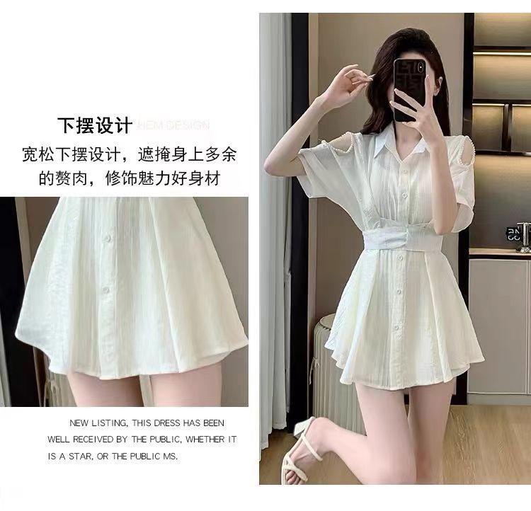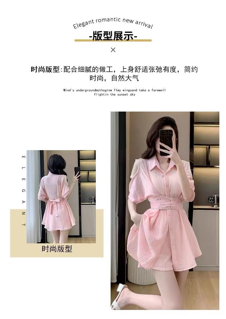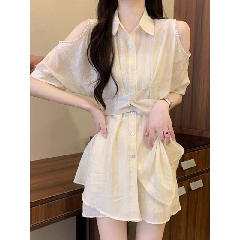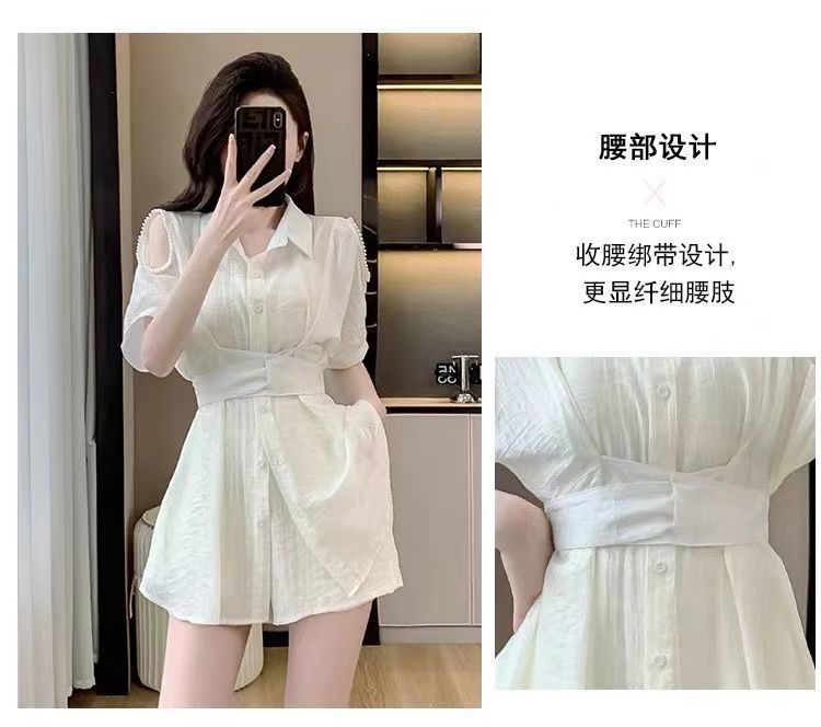 원피스/세트 여름 새 스타일 셔츠 느슨한 오프 숄더 유행 태양 보호 살을 가리는 슬리밍 반바지 투피스 세트 여성 트렌디스토어 가기