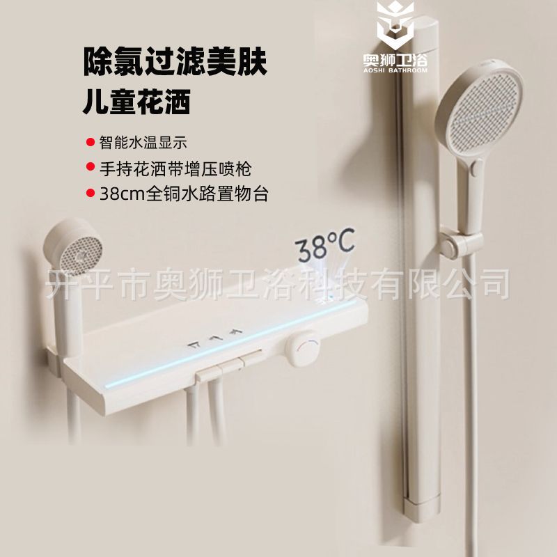 摩航同款儿童过滤芯分体式简单增压花洒银加奶白色