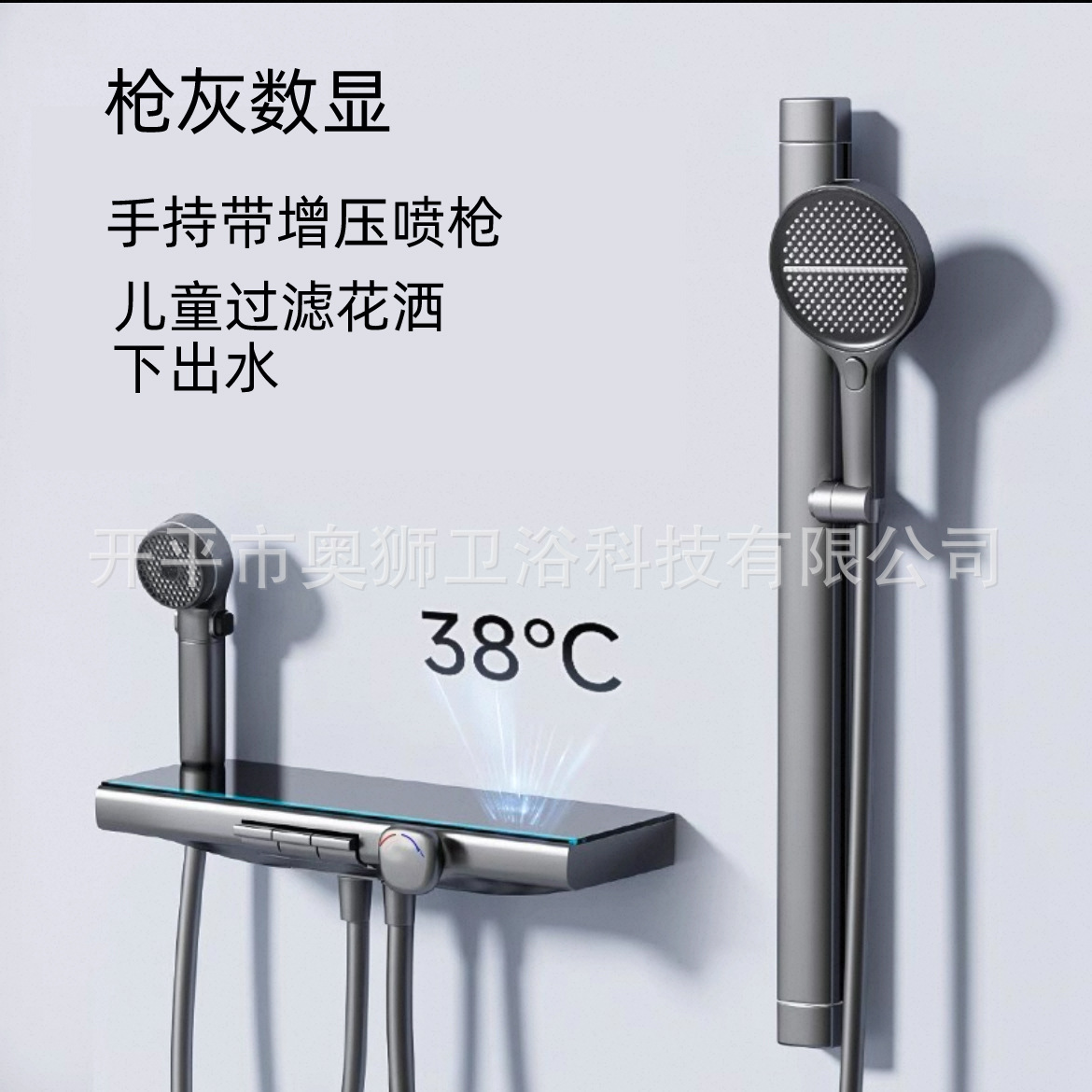 어린이용 필터 우유색 전체 구리 샤워 헤드 세트(상단 스프레이 제외), 간단한 건메탈 색상의 분리형 가압식 욕조 수전스토어 가기