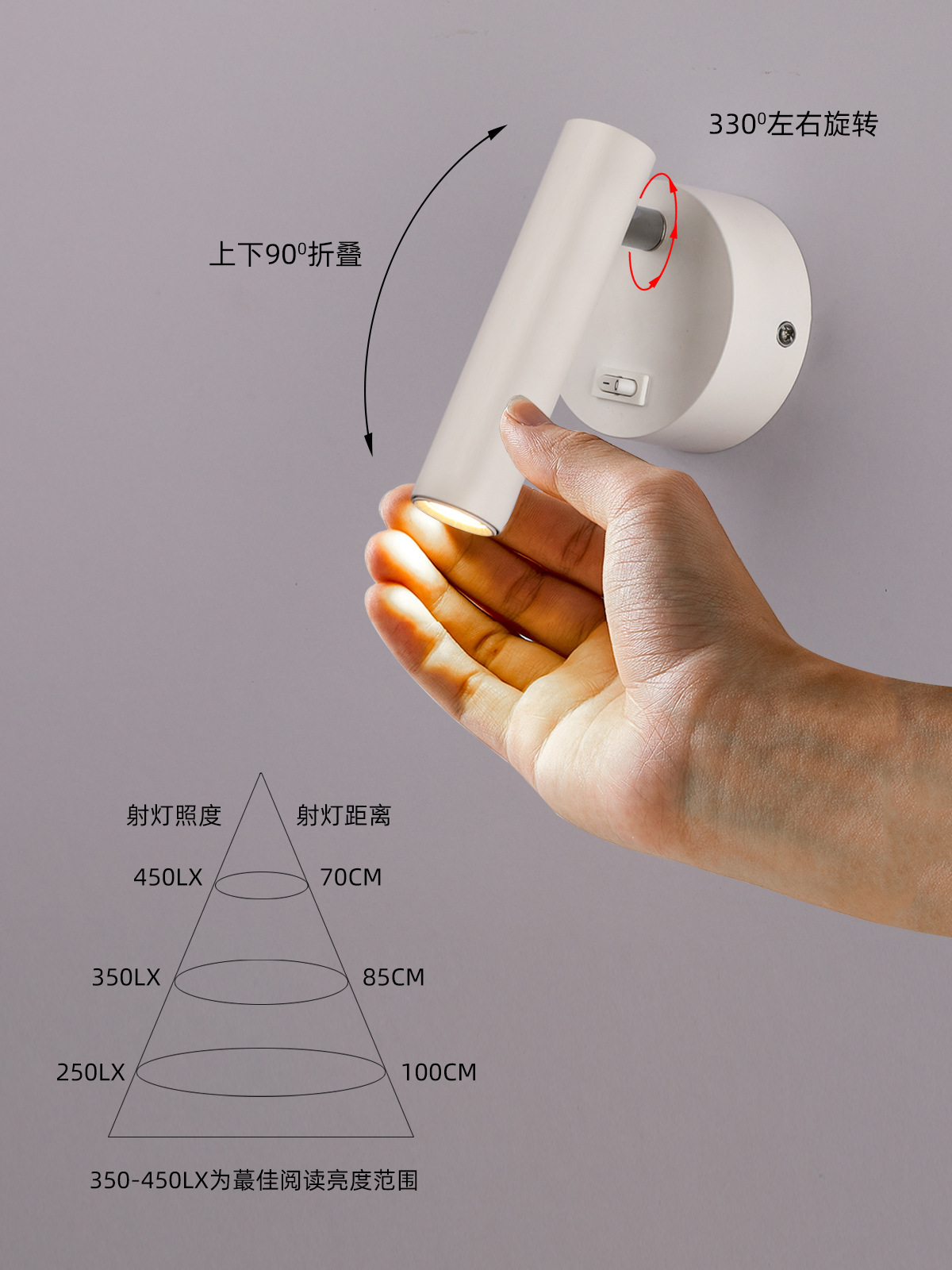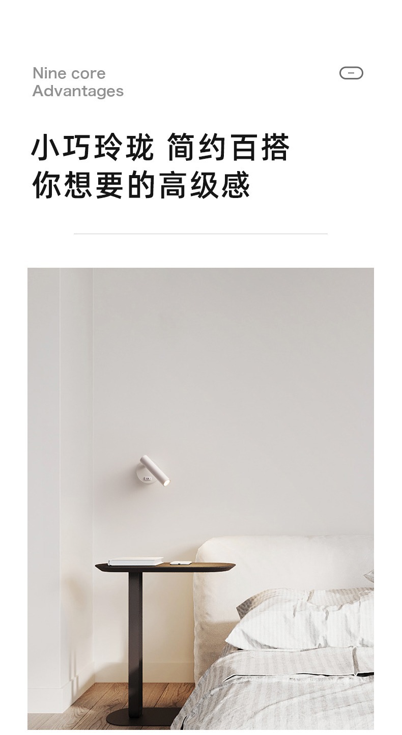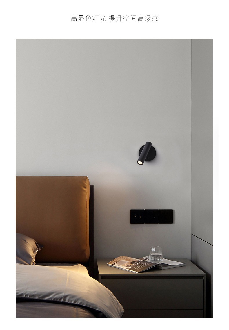 스위치가 있는 호텔 침실 침대 옆 벽등, 350도 회전 분위기 조명, LED 눈 보호 독서용 창의적 분위기 조명