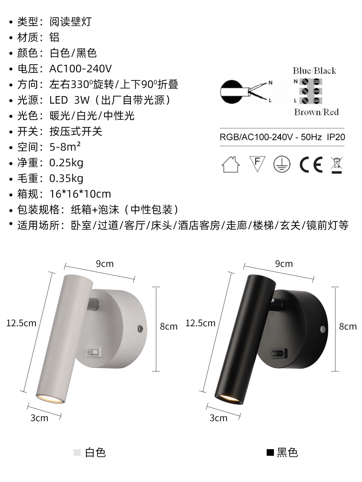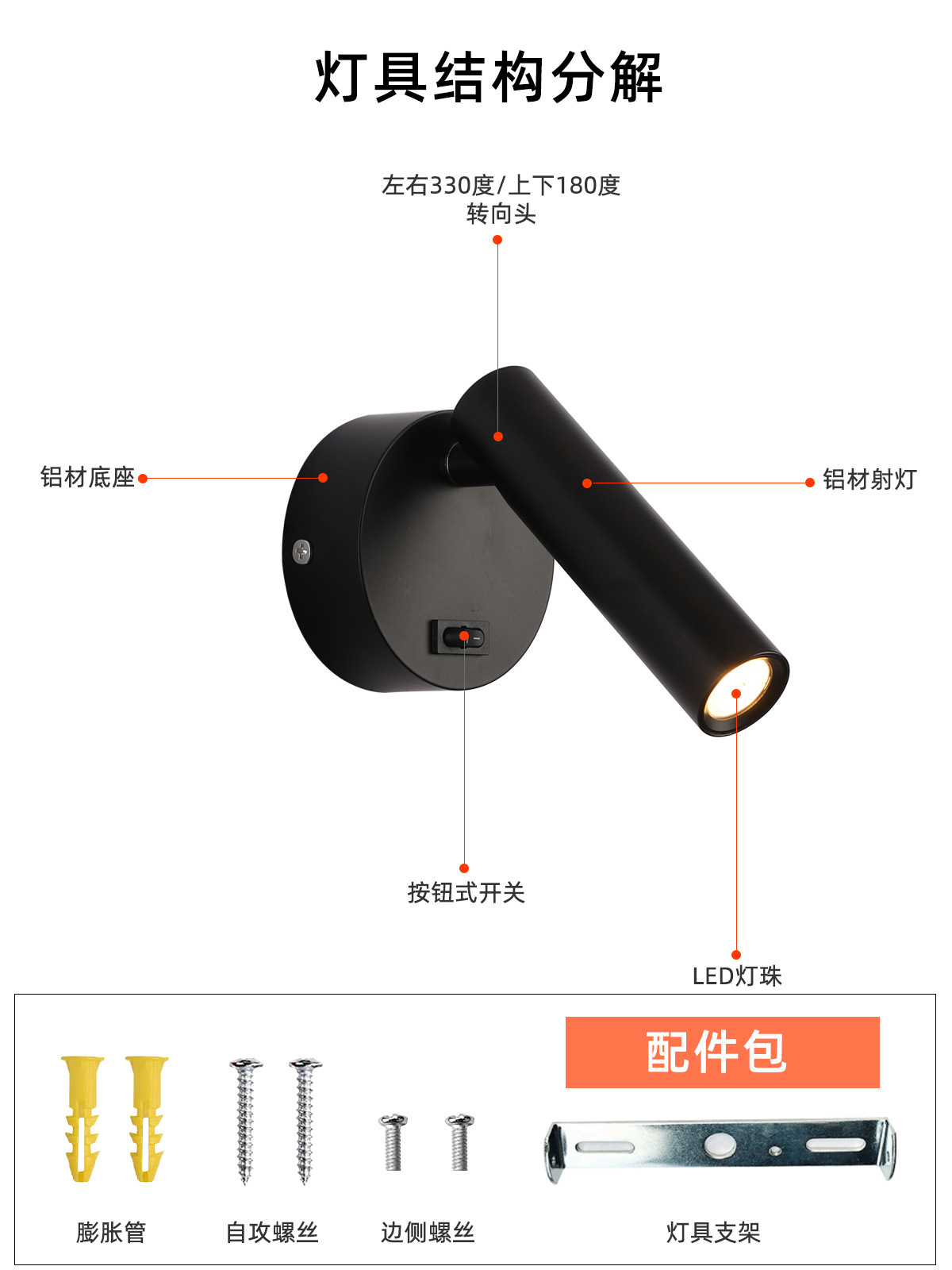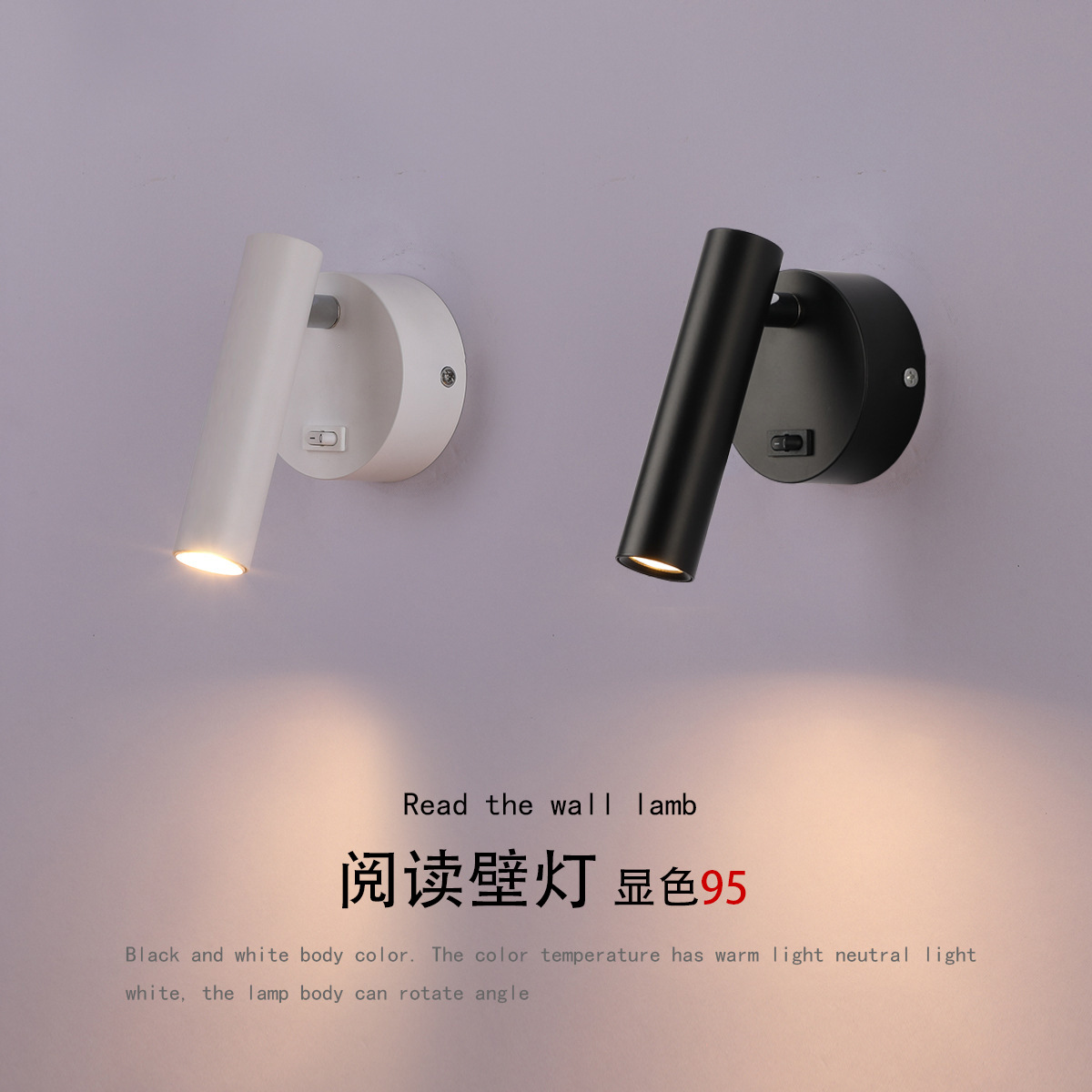 스위치가 있는 호텔 침실 침대 옆 벽등, 350도 회전 분위기 조명, LED 눈 보호 독서용 창의적 분위기 조명
