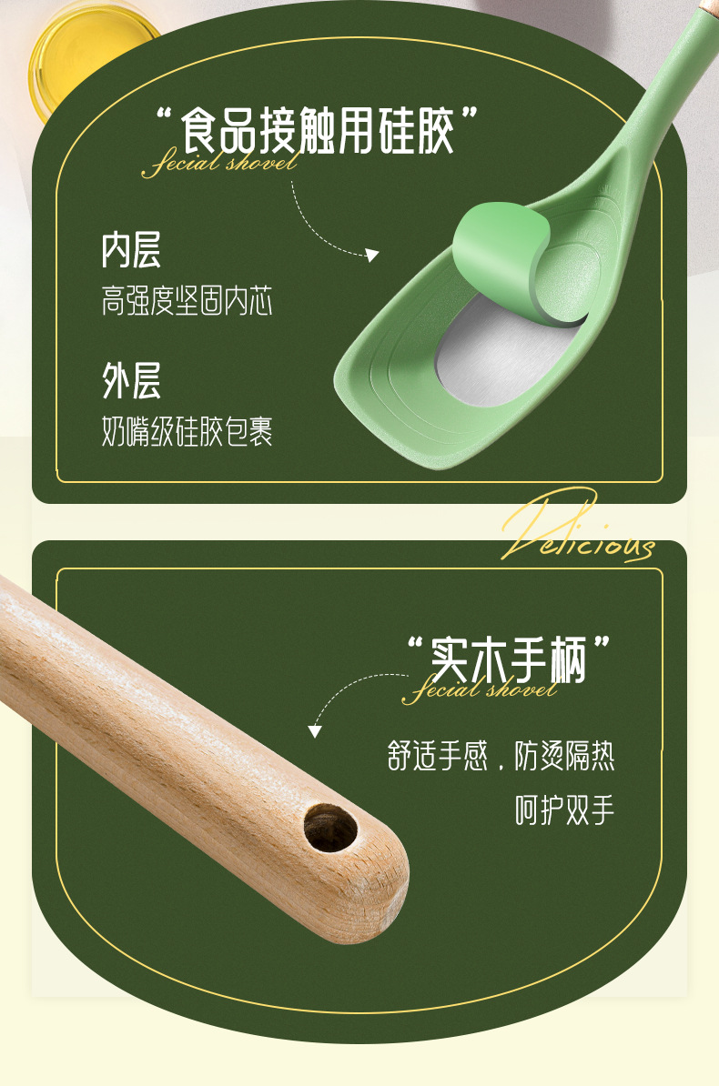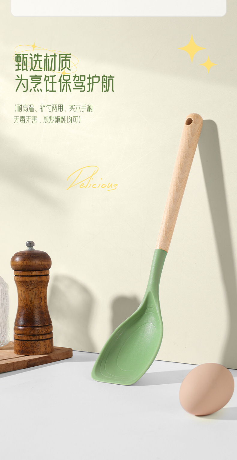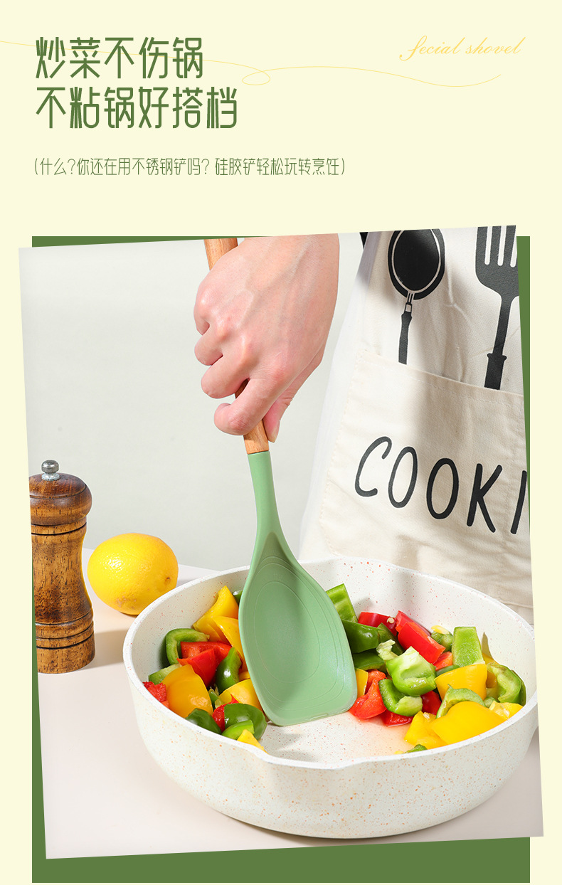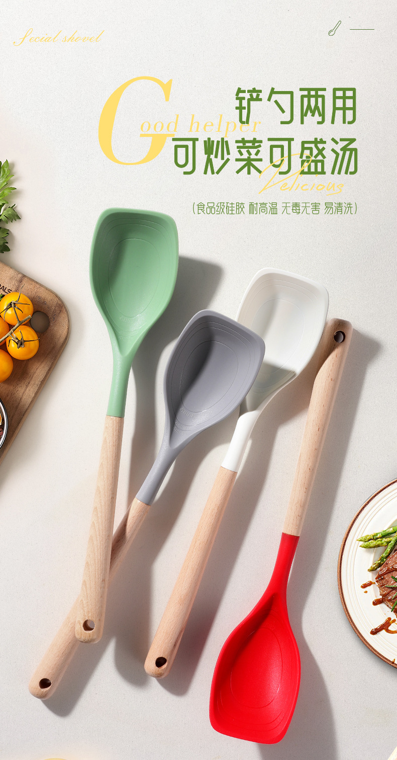 새로운 긴 손잡이 실리콘 주방용품 다용도 실리콘 뒤집개 다기능 논스틱 조리용 2-in-1 뒤집개