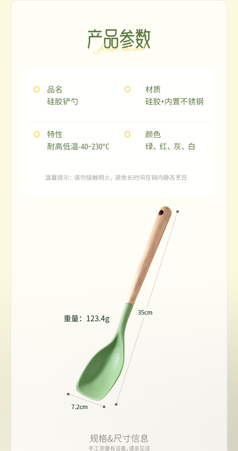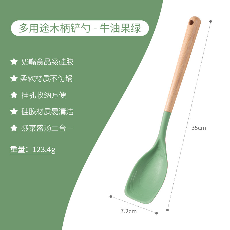 • 긴 나무 손잡이 삽 숟가락-녹색
