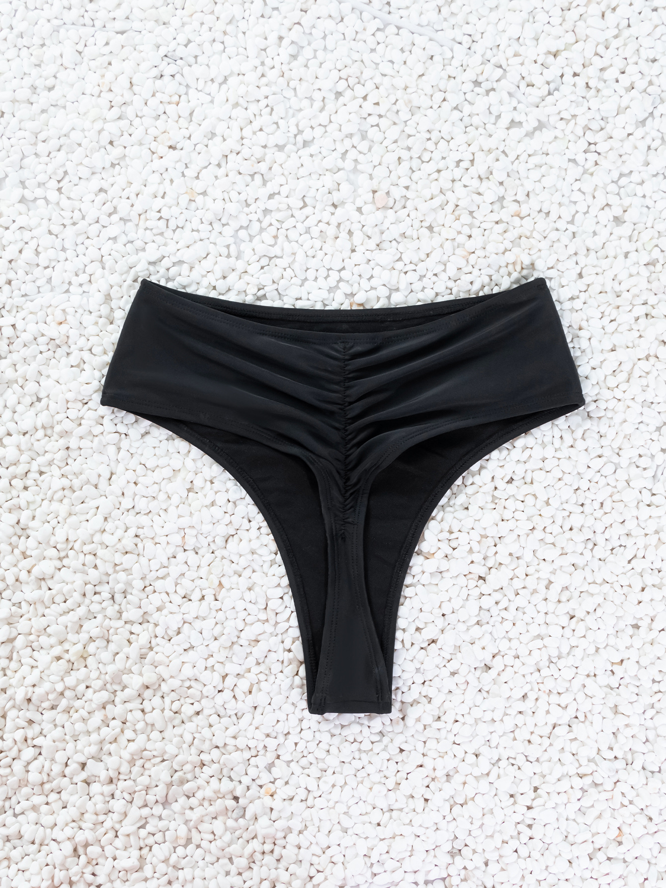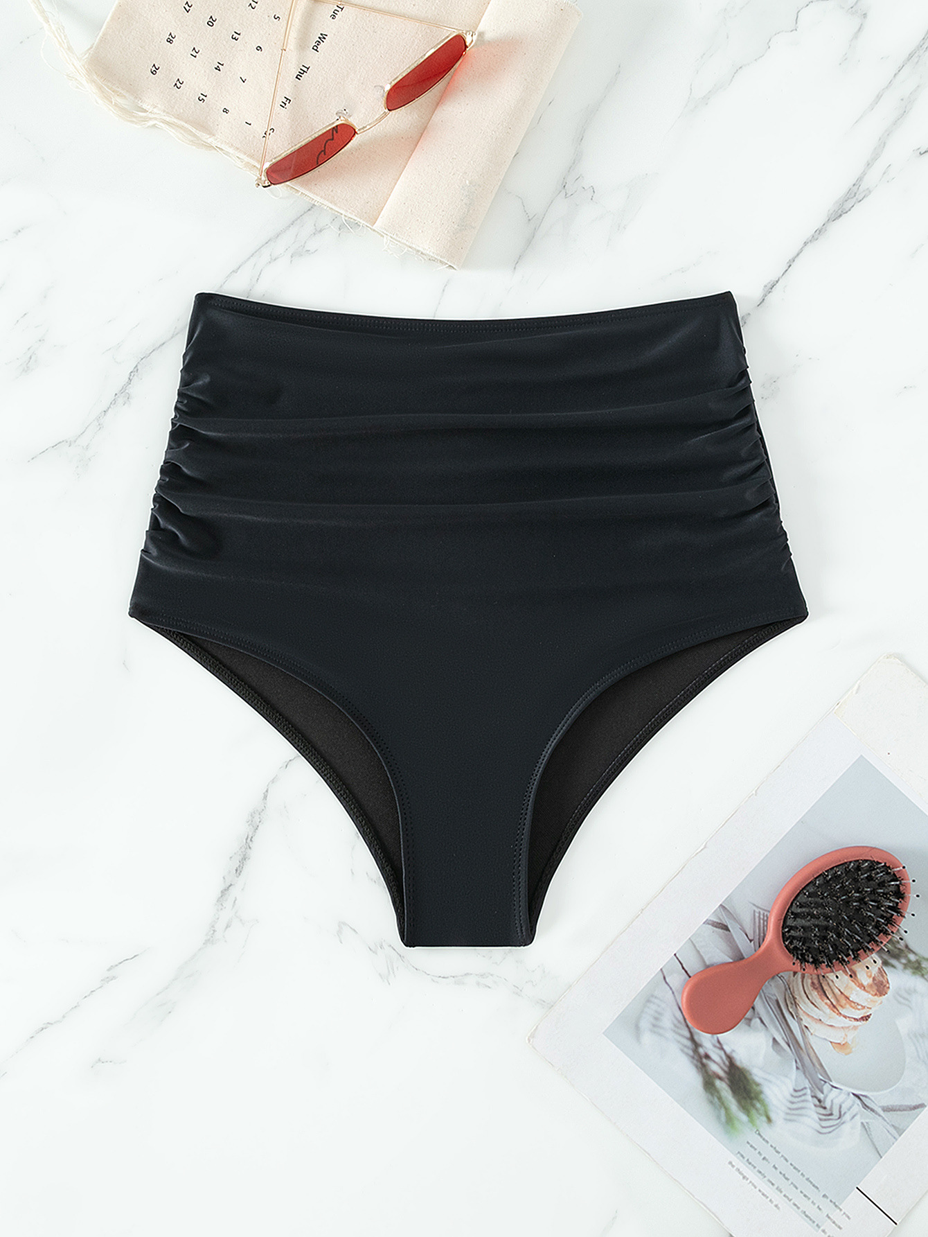 새로운 단색 섹시한 유럽과 미국의 국경 무역 비키니 높은 탄성 높은 허리 주름 수영복 수영 트렁크