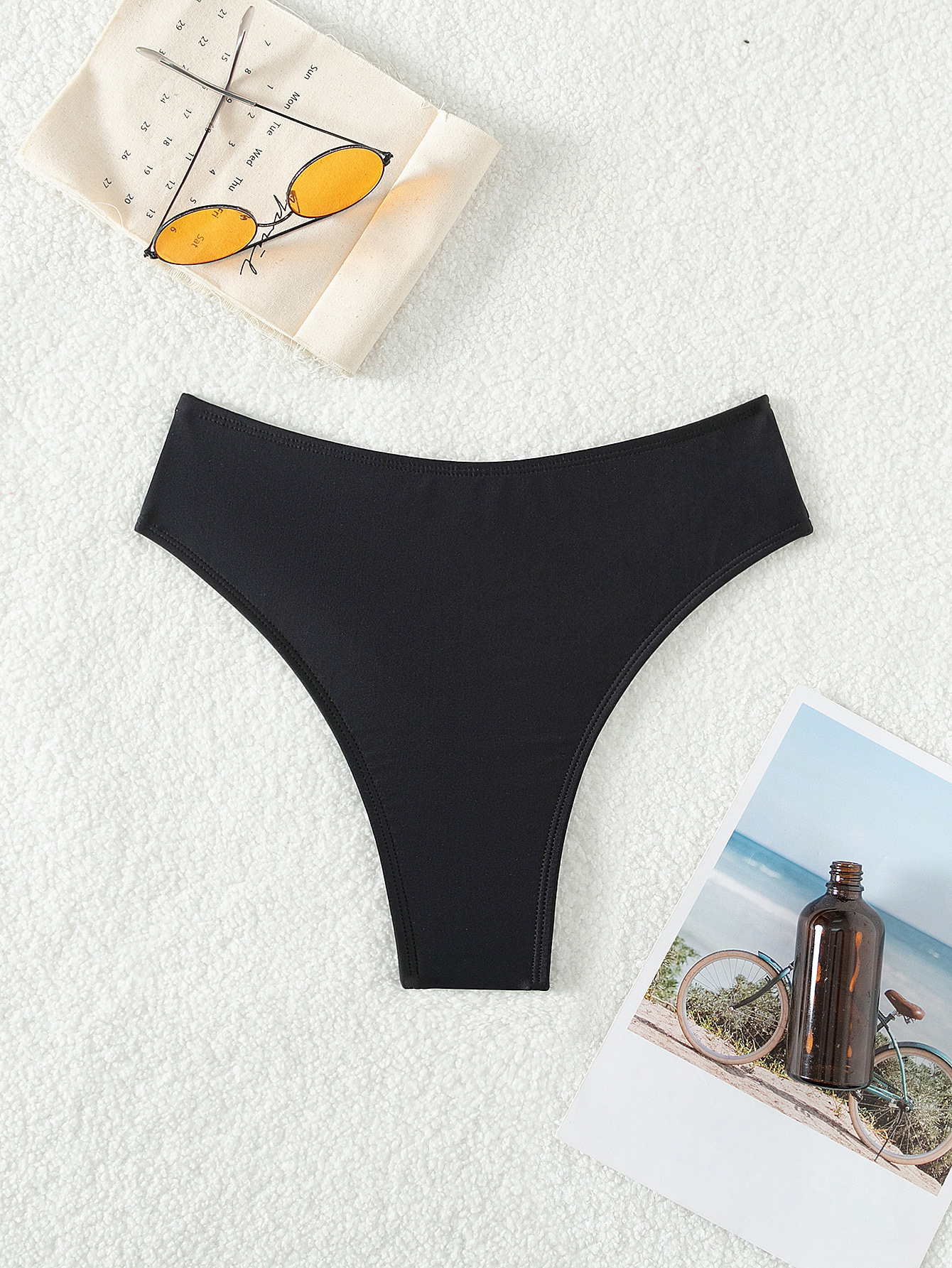 새로운 단색 섹시한 유럽과 미국의 국경 무역 비키니 높은 탄성 높은 허리 주름 수영복 수영 트렁크스토어 가기