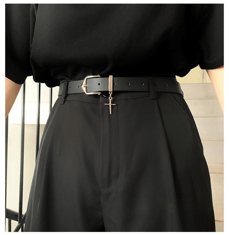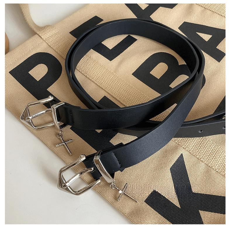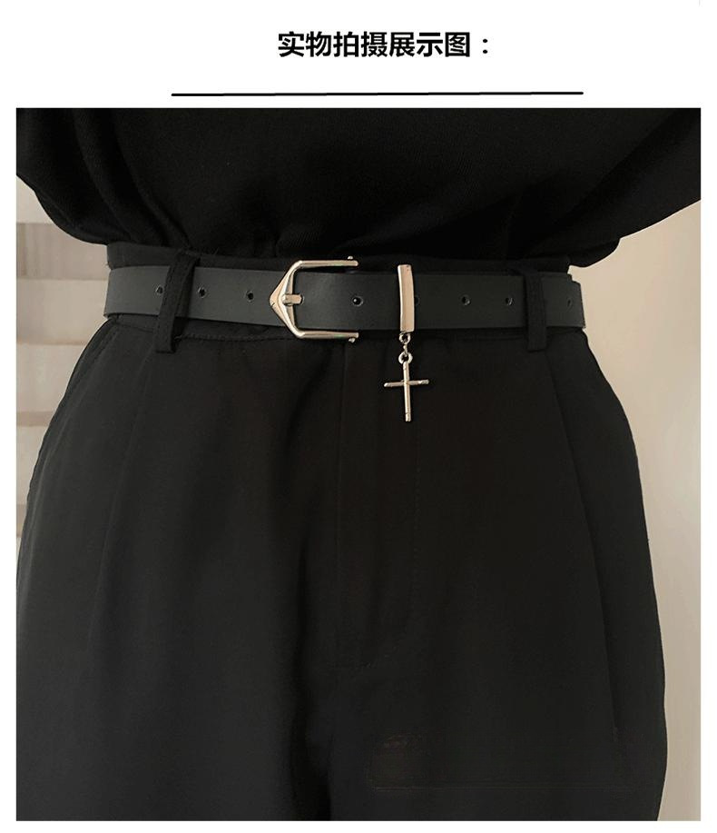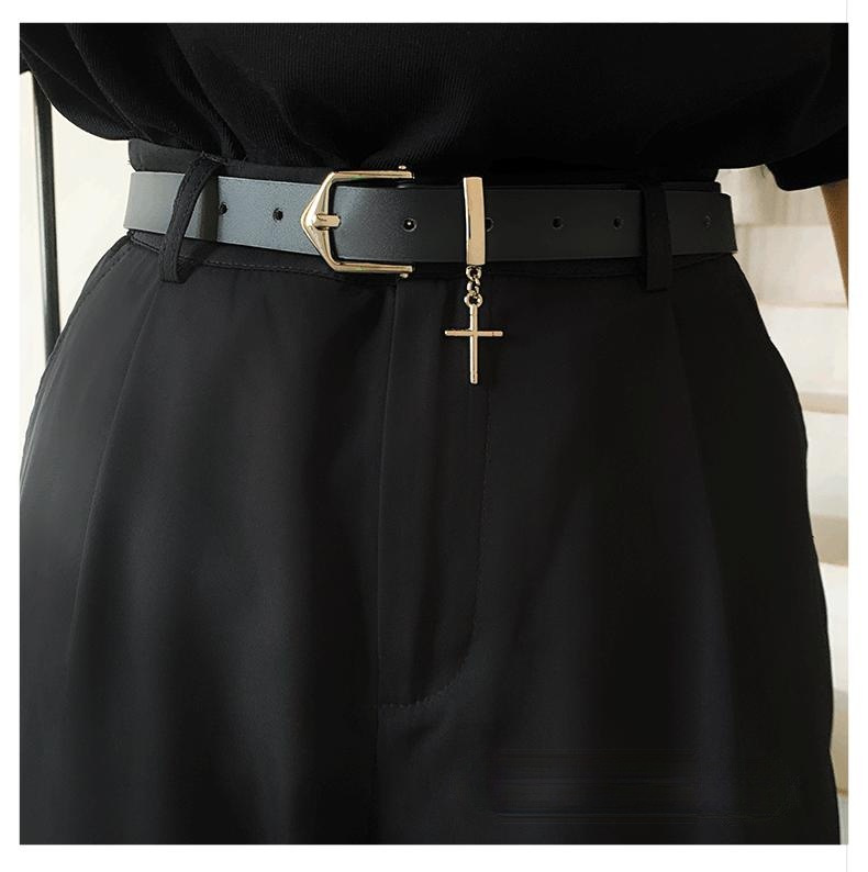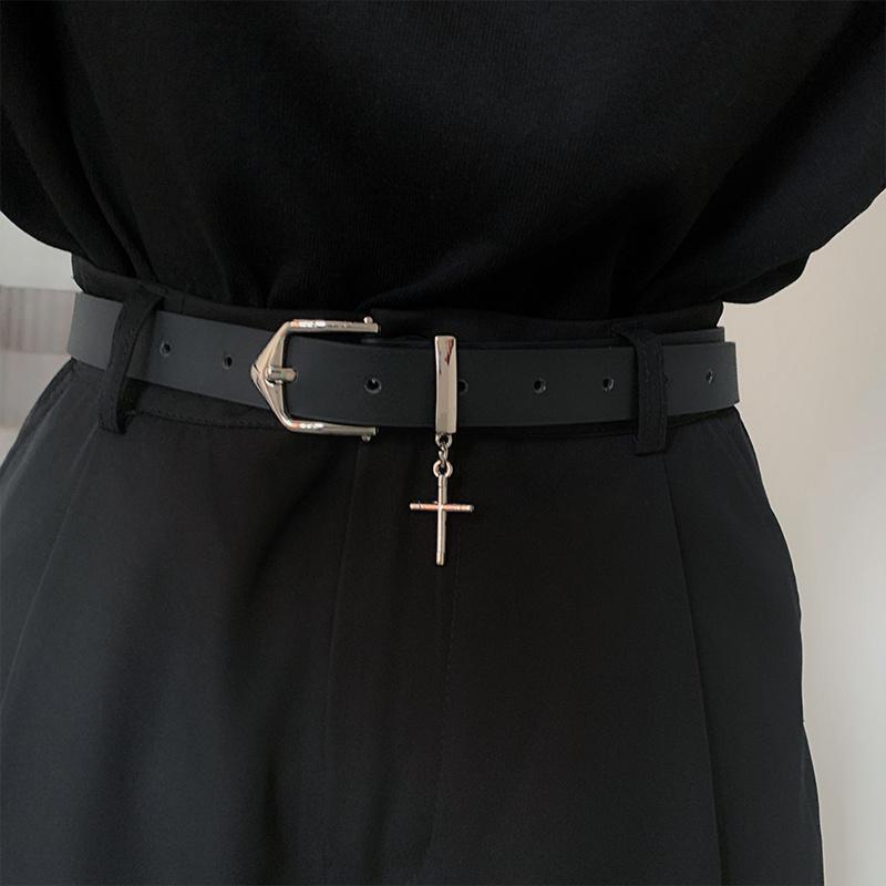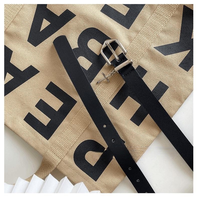 벨트 여성의 하이 스트리트 디자인 센스 크로스 장식 청바지, 모든 경기 유행 맞춤형 학생 남성 블랙 벨트스토어 가기