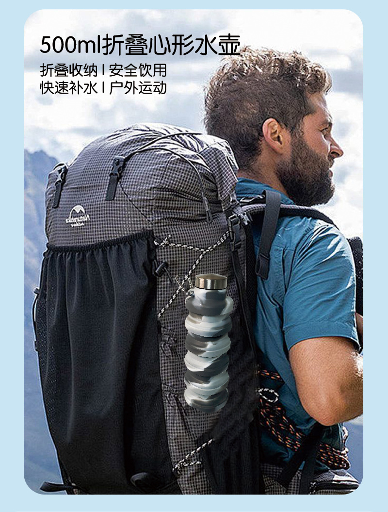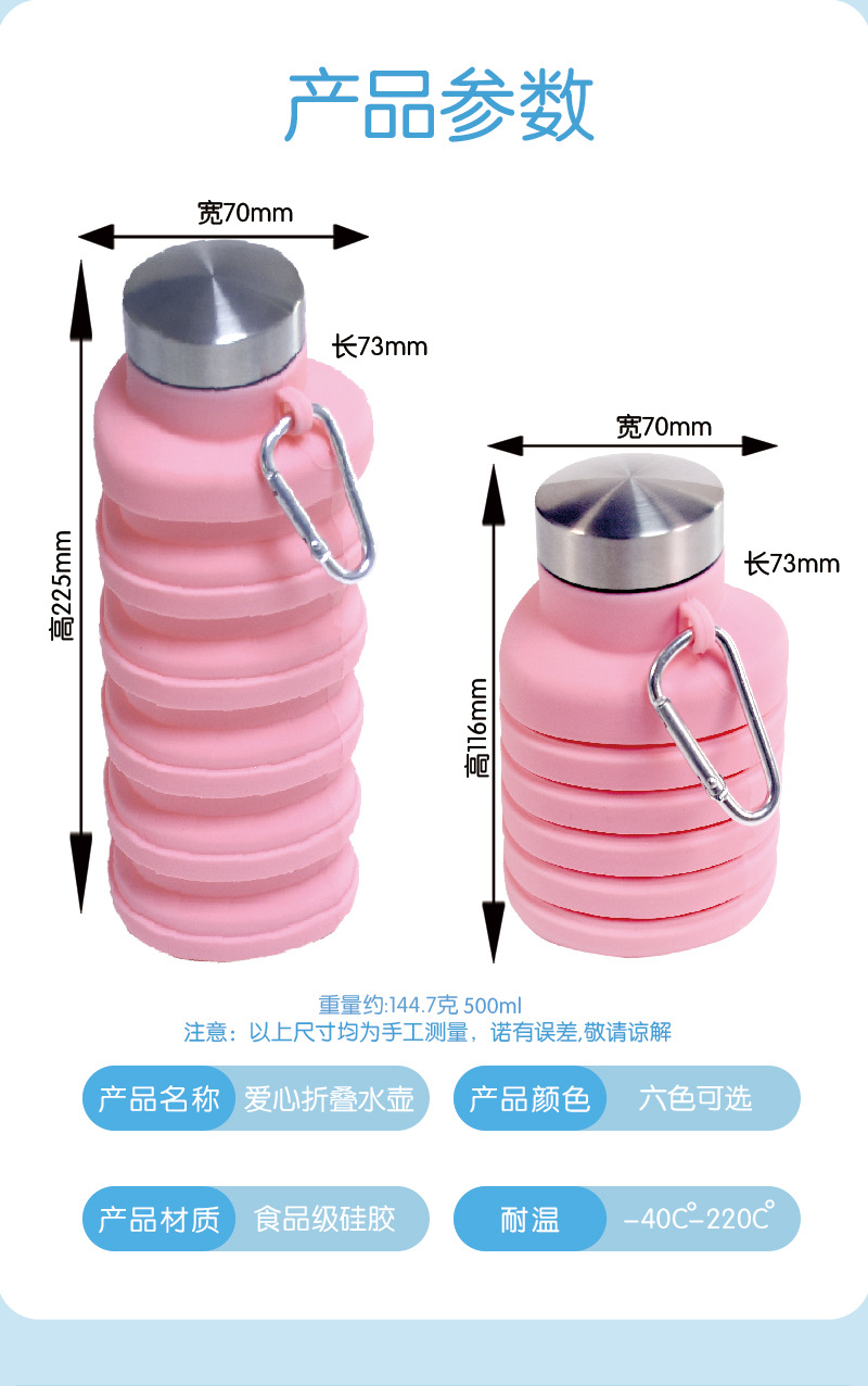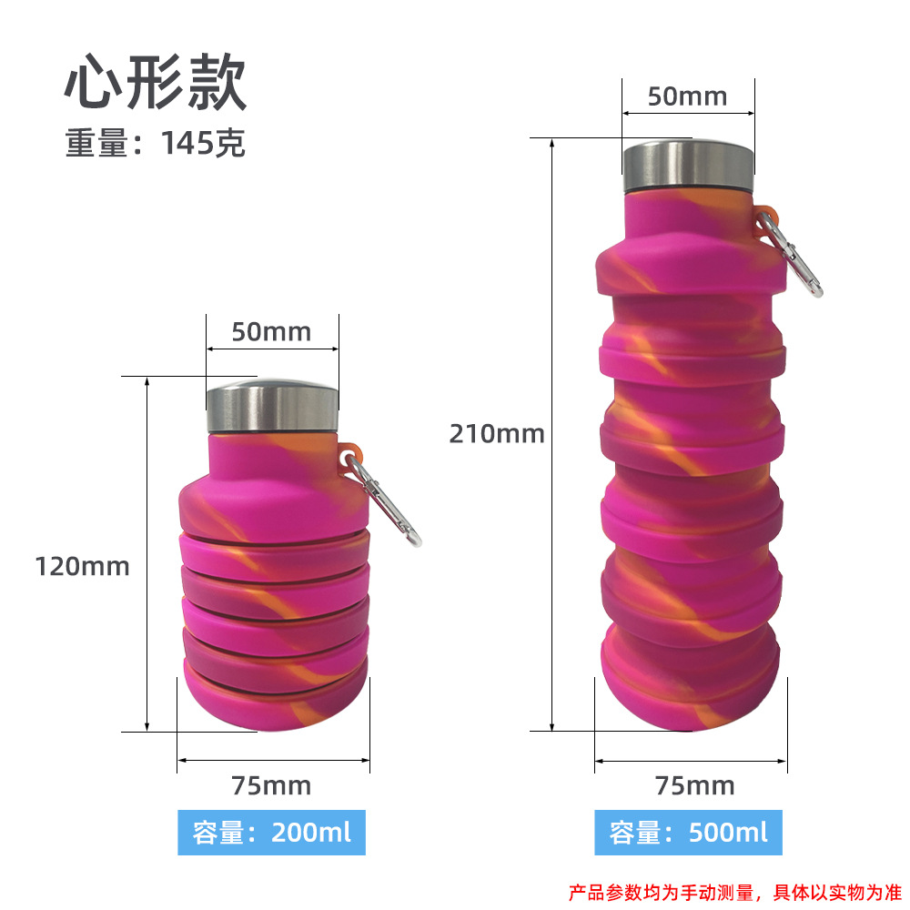 名称:硅胶折叠水杯心形款500ML