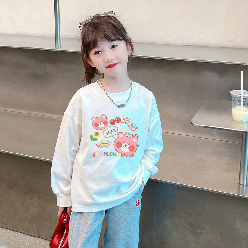 [순면] 여자 어깨 긴팔 티셔츠 2024 가을 새 중대형 아동복 서양식 소녀베이스 셔츠스토어 가기