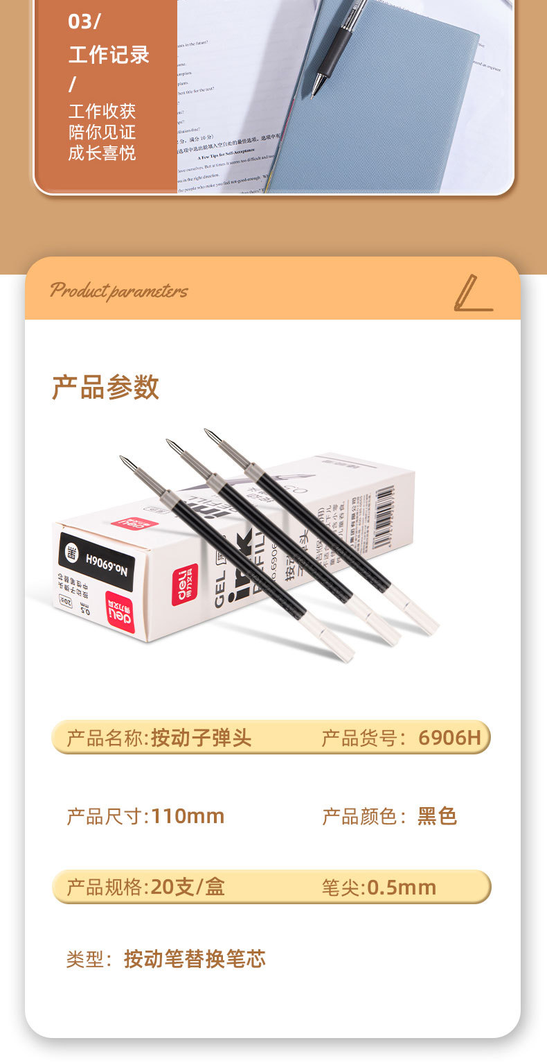 Deli 6906H 프레스 리필 0.5mm 총알 젤 펜 유니버설 S08 프레스 리필 문구스토어 가기