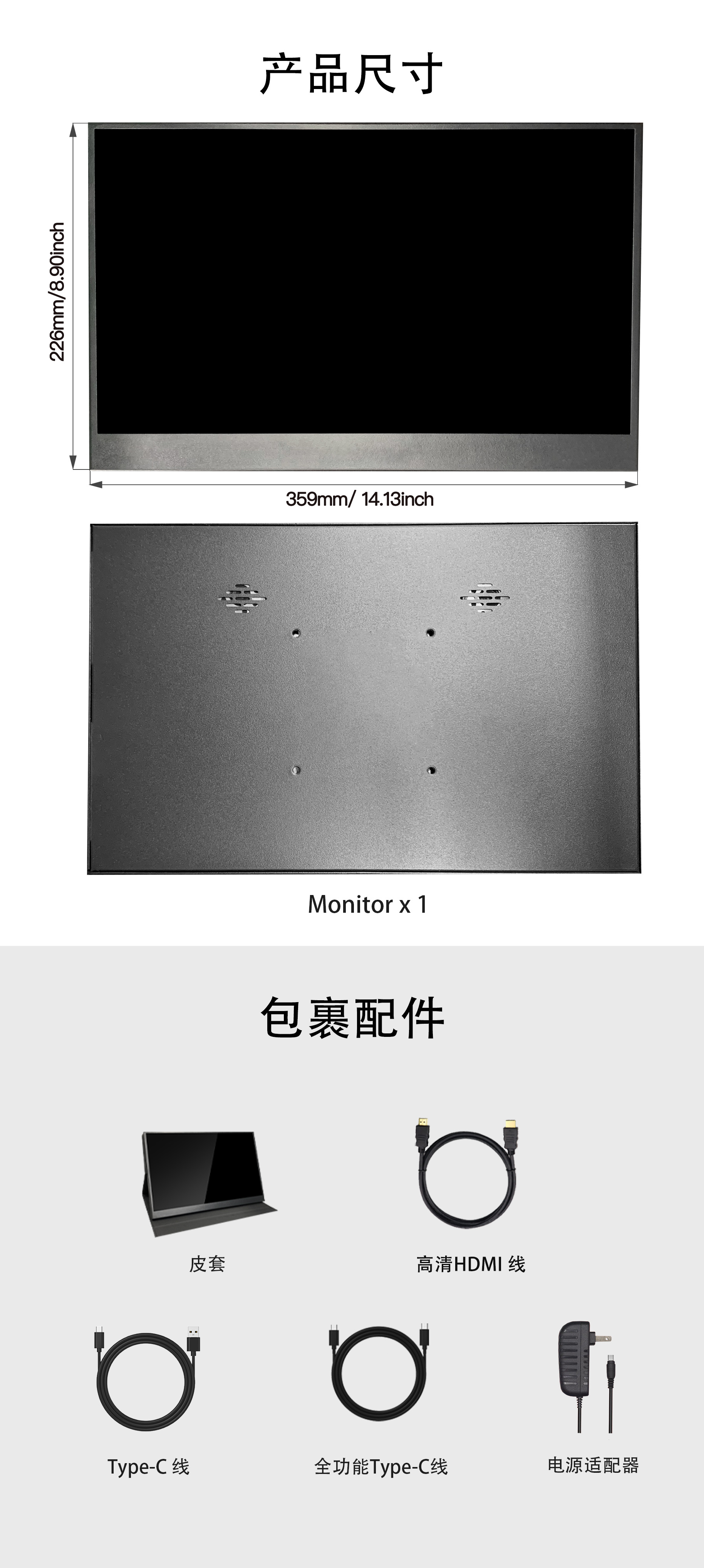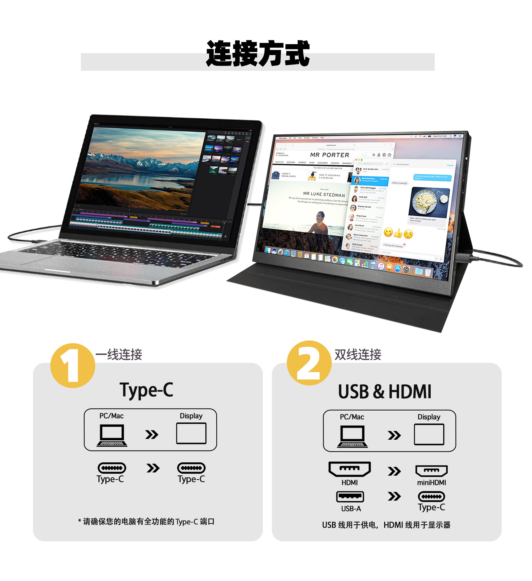 4K 휴대용 디스플레이 13.3inch Ultra HD Type-C 터치 스크린 외부 노트북 확장 컴퓨터 보조 화면
