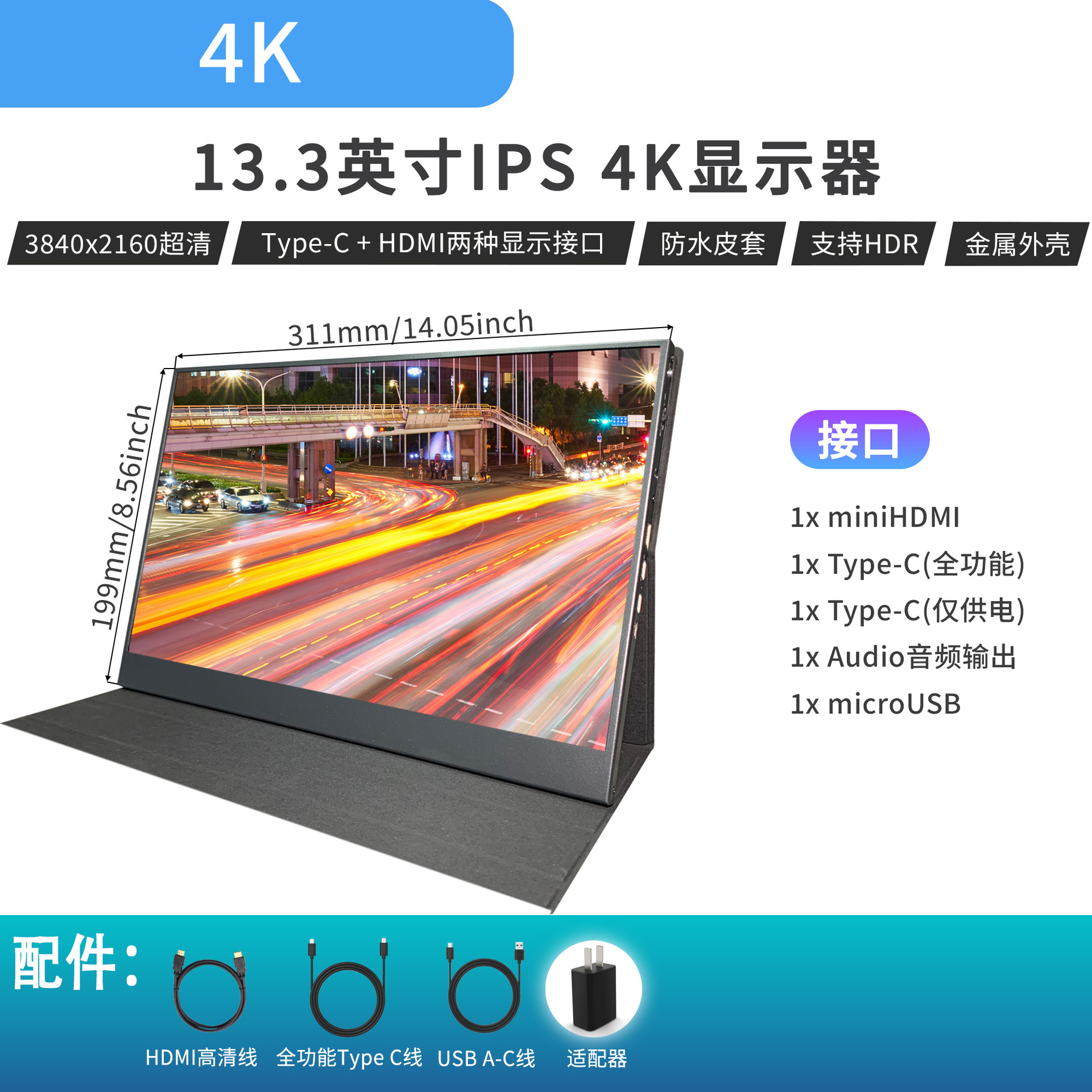 4K 휴대용 디스플레이 13.3inch Ultra HD Type-C 터치 스크린 외부 노트북 확장 컴퓨터 보조 화면스토어 가기