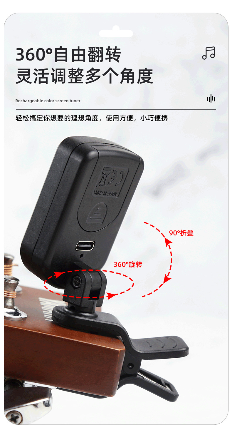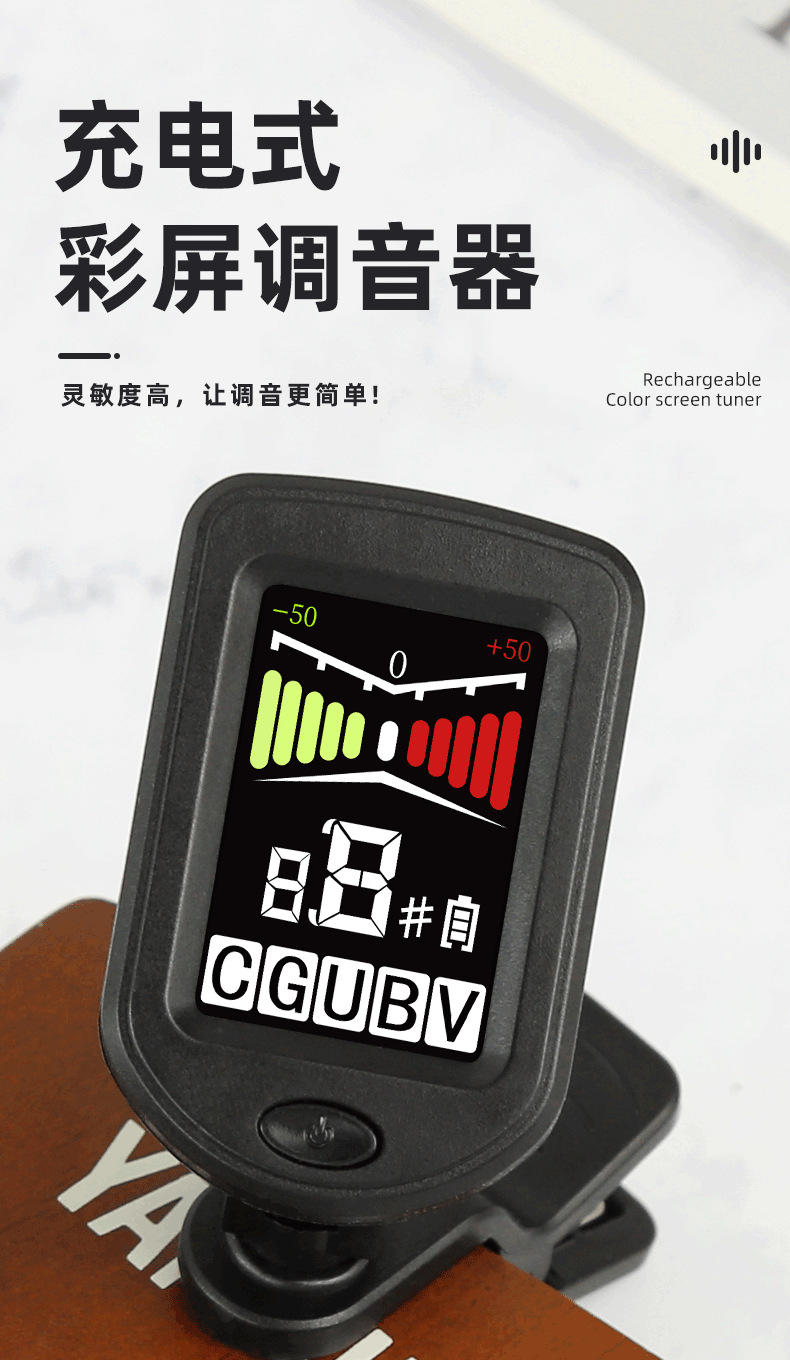 Rockhouse 충전식 컬러 스크린 기타 튜너 전용 바이올린 우쿨렐레 일렉트릭베이스 일렉트릭 유니버설