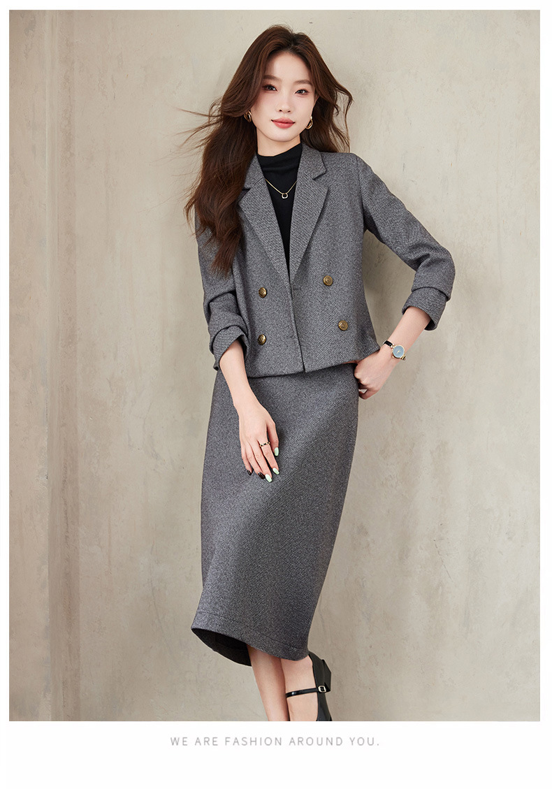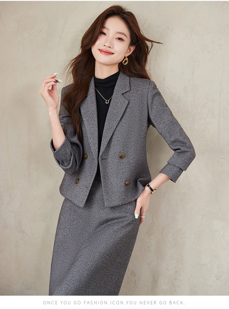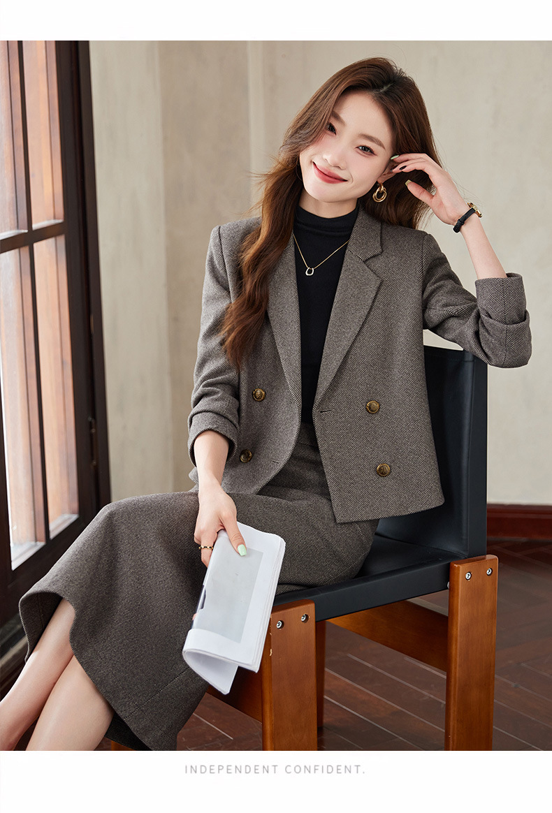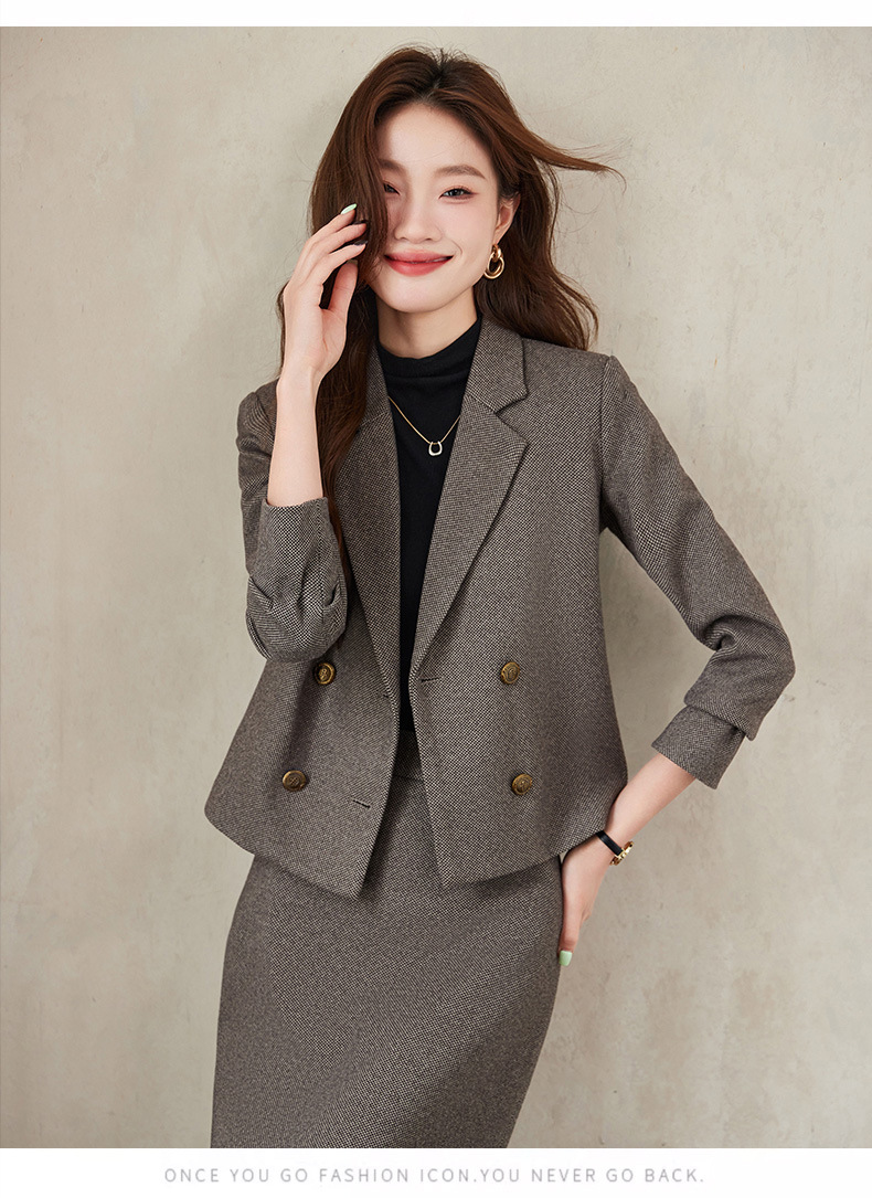 여자 2024 가을 겨울 새로운 학술 스타일 프랑스 슬림 세트 짧은 코트 긴 치마 세트스토어 가기