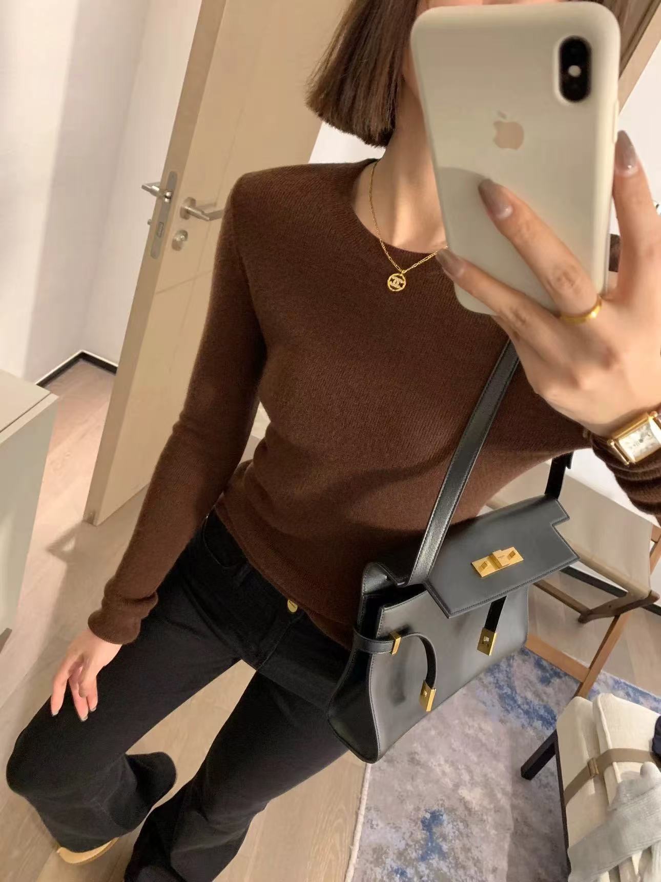 官价2800软妹币左右每年改一点点细节和颜色的东西哈 我真的第一次真心希望大家入手两个版型不同颜色换着穿 因为她就是很经典百搭的那种 基础毛衣满大街都有事 紧密的工艺属于老款 这种手法不沾身的才是真的好穿! 这个是需要你穿的过程中才可以体会到的 我觉得只要你收到 绝对会爱不释手的那种! 18针 毛衣说实话对机器要求挺高的 有那种说法 纱线越细越舒服 他家的纱线工厂都是赞不绝口 比较不亏我爱了这么多年 这个价格闭眼入手就行了哈~