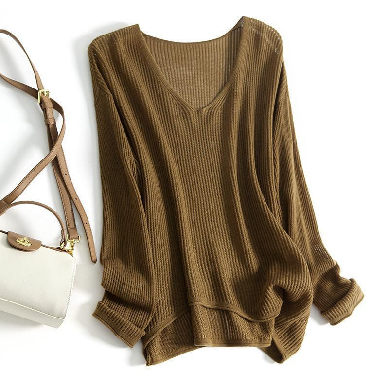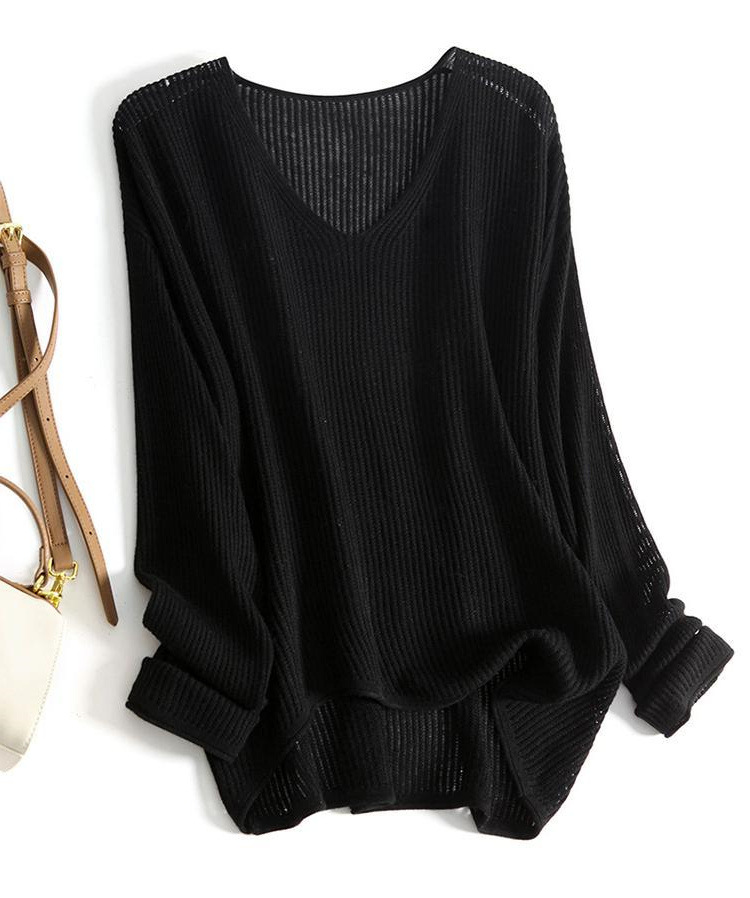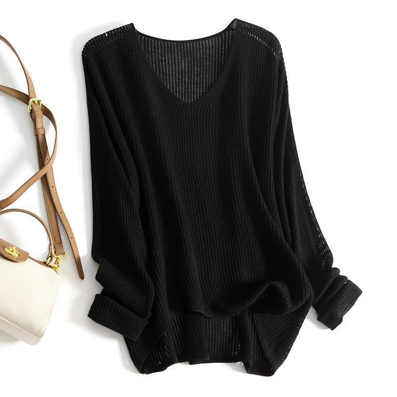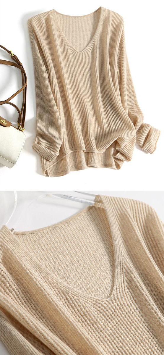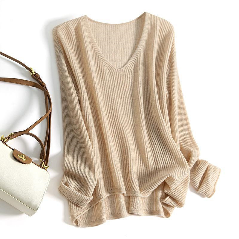슈퍼 플러스 사이즈 300 진 통통녀 게으른 조커 느슨한 슬림 V 넥 가을과 겨울 긴 소매 니트 스웨터베이스 셔츠 여성