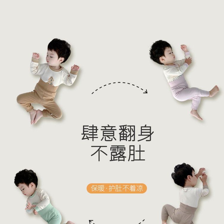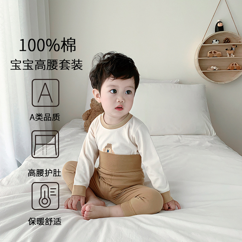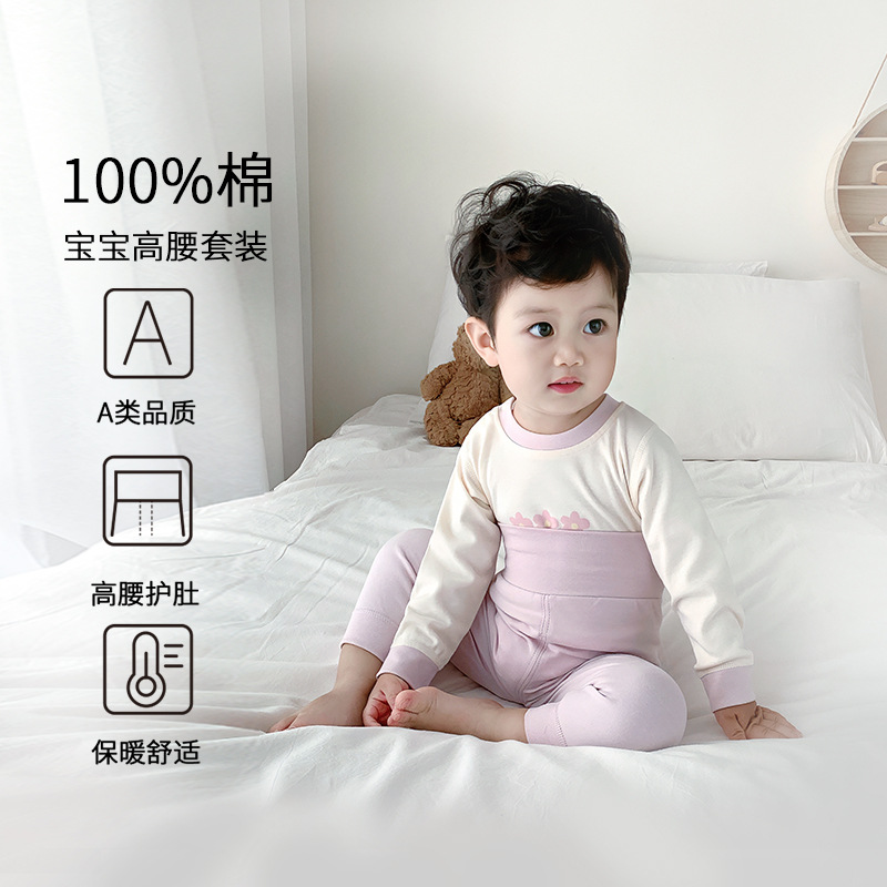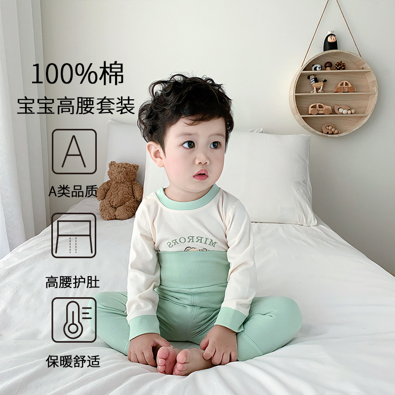 아기의 가을 옷과 바지 세트 순수한 면화 아기의 쪼개지는 높은 허리 배꼽 따뜻한 내복 소녀베이스 셔츠 가을과 겨울스토어 가기