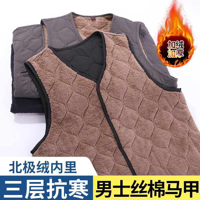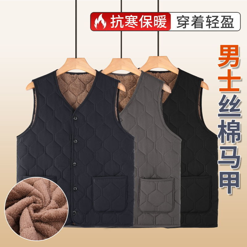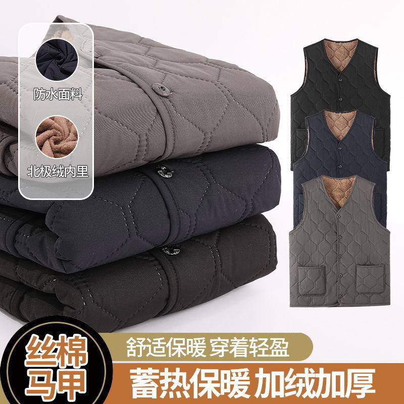 가을과 겨울 남성 방풍 따뜻한 내면 조끼 기모 두꺼운 중년 및 노인 플러스 사이즈 조끼 조끼스토어 가기